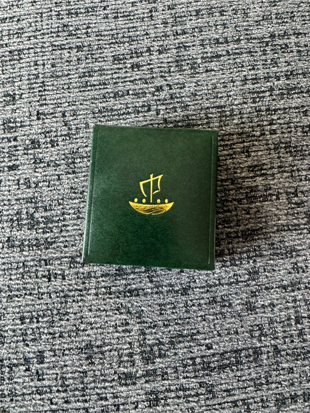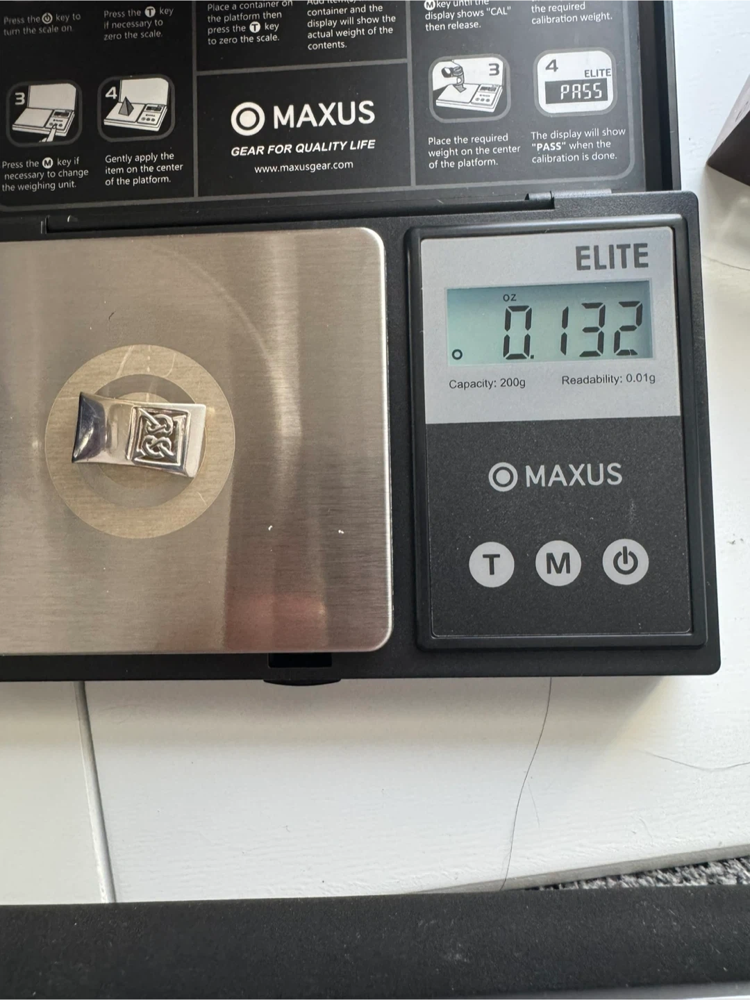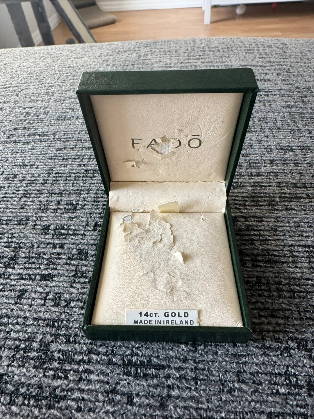 Selling a vintage necklace charm with a Celtic knot design. It comes in its original box. The charm is silver-colored and weighs 0.132 oz. 14k gold made in Ireland