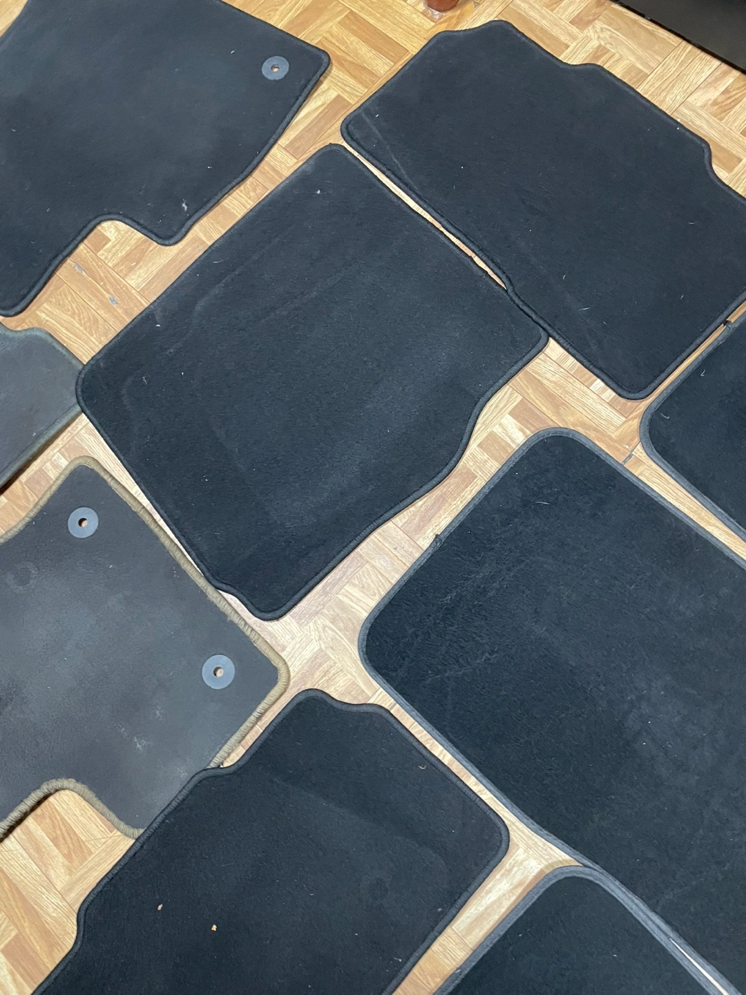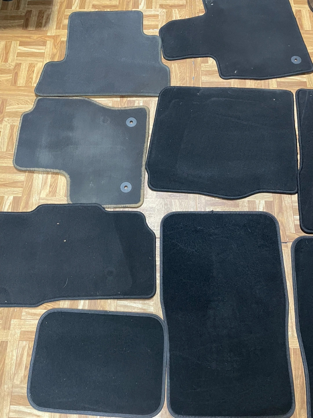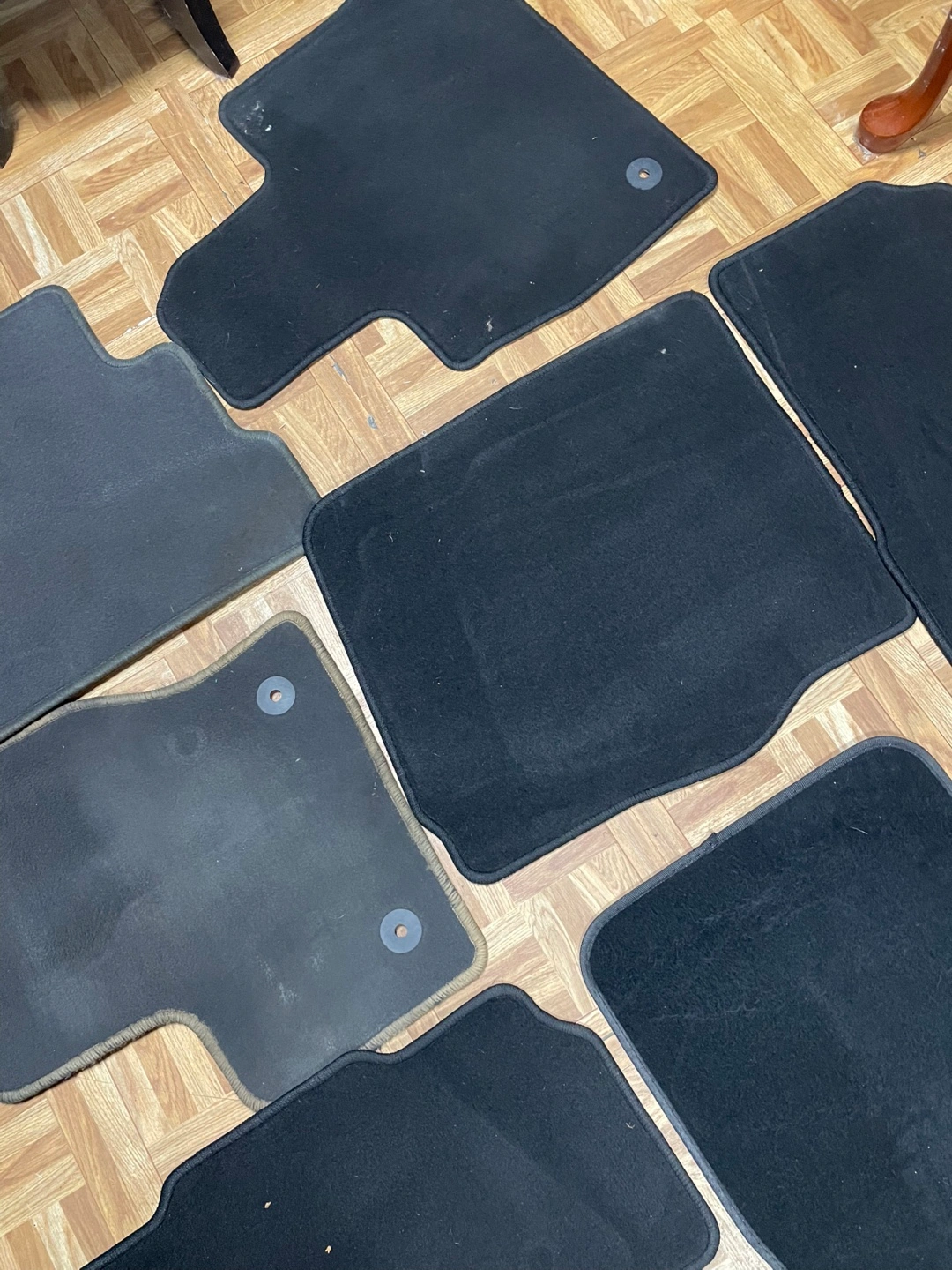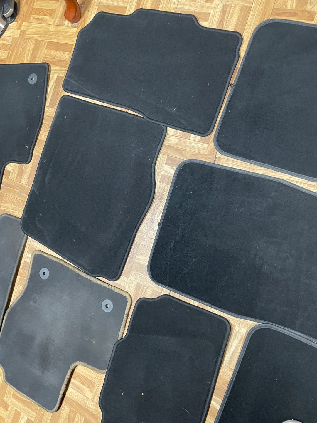 Selling a set of black car floor mats. They show signs of use, as seen in the photos. Please take a close look to ensure they meet your needs!
