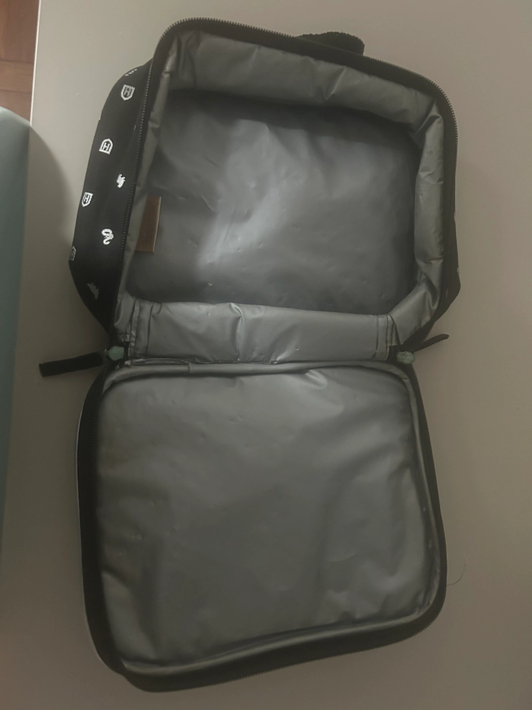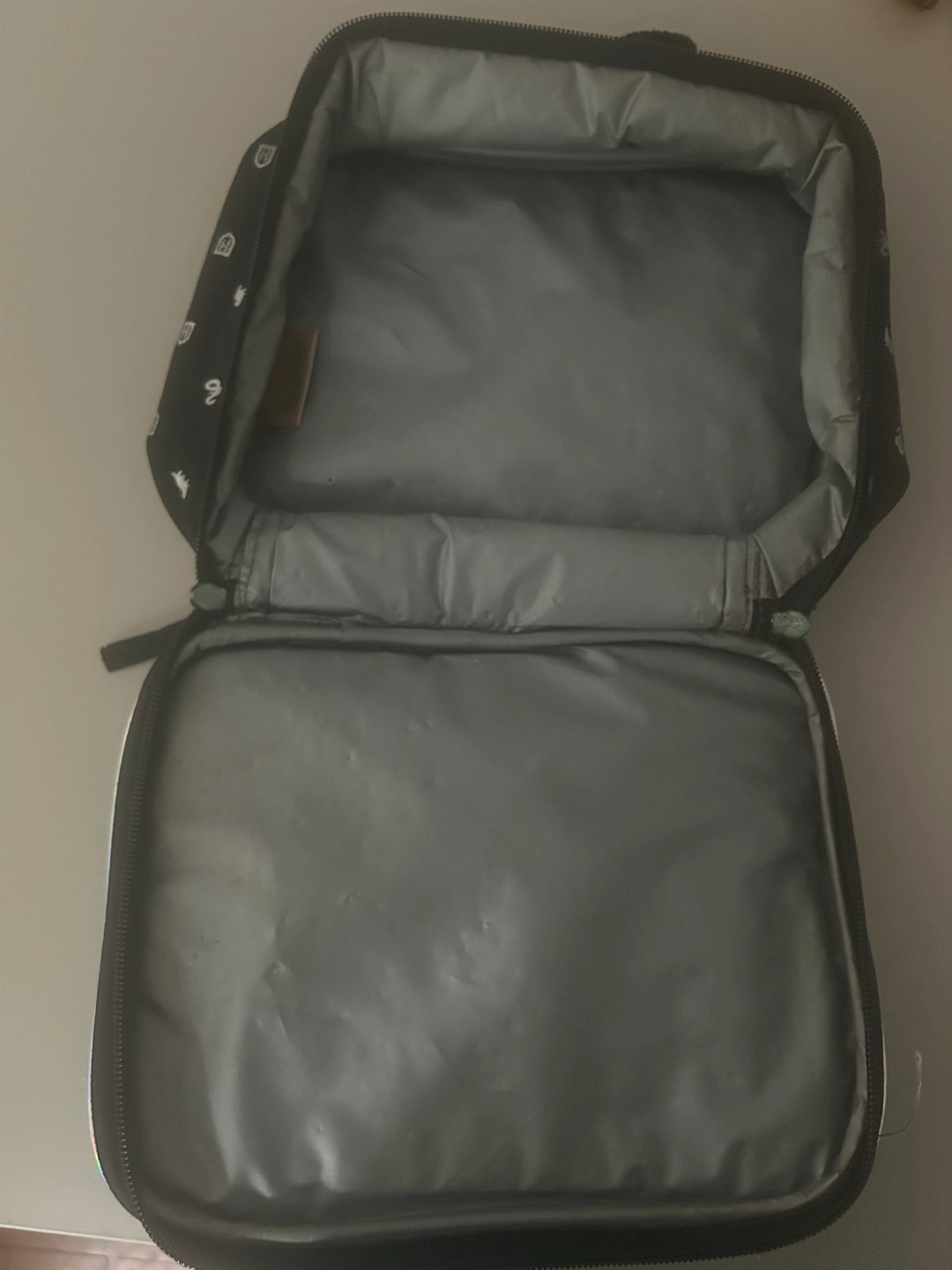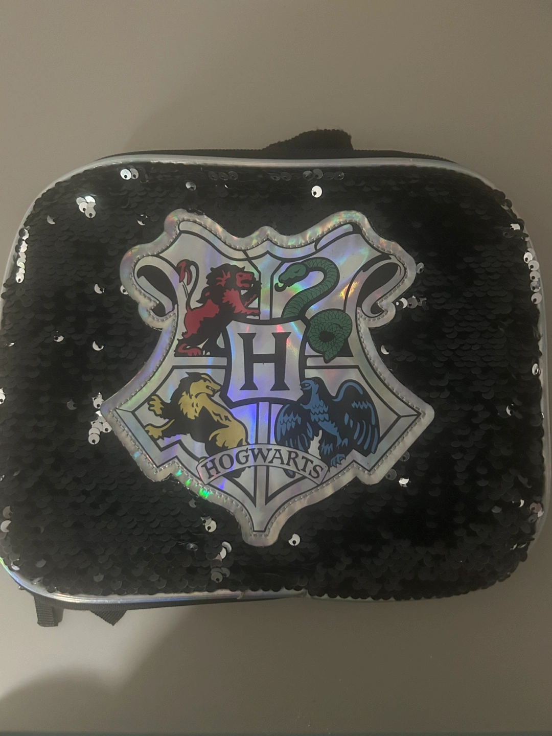 I'm selling a Harry Potter themed lunch box. It's black with a Hogwarts crest on the front. It's in good condition and has a spacious insulated interior to keep your food fresh! Pre-owned!
