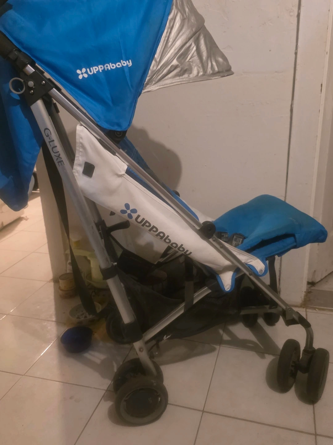 Selling a blue UPPAbaby G-Luxe stroller. It's in great condition and ready for a new home. This lightweight stroller is perfect for travel and everyday use!