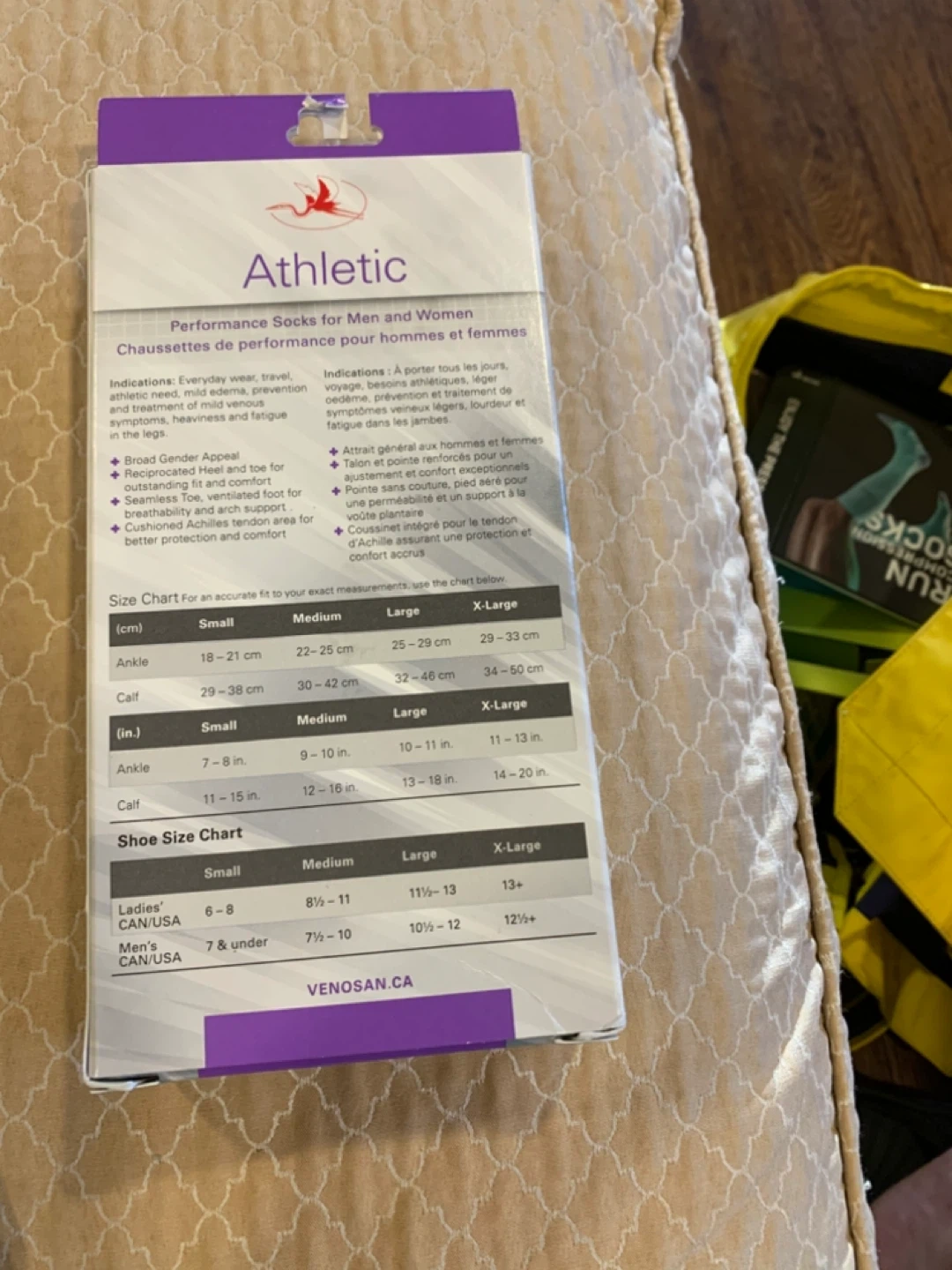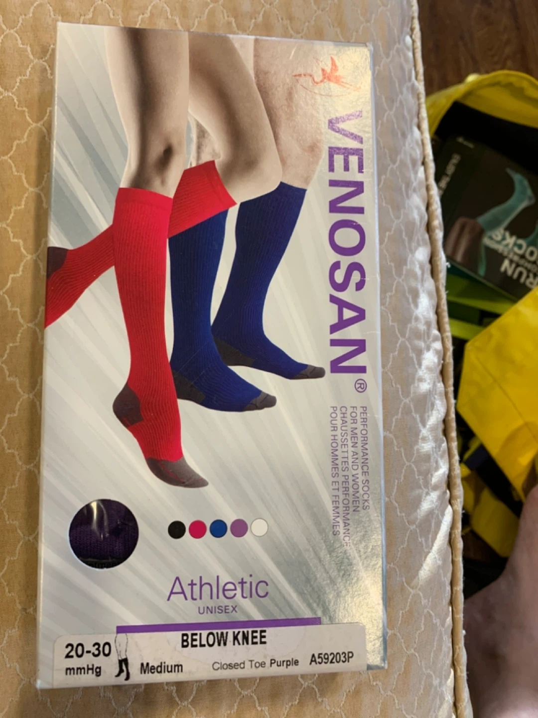 60VENOSAN Athletic Unisex Below Knee socks in size Medium! These are closed toe purple socks with 20-30 mmHg compression. Great for everyday wear, travel, and mild venous symptoms