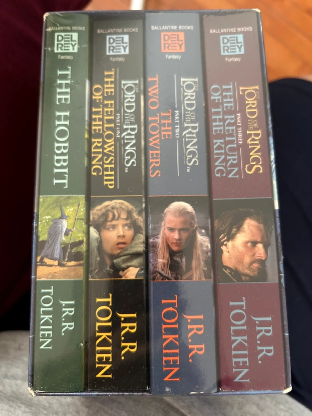 I'm selling a brand new, still-in-shrink-wrap box set of J.R.R. Tolkien's The Lord of the Rings and The Hobbit. It includes The Hobbit, The Fellowship of the Ring, The Two Towers, and The Return of the King. Originally bought for $29.96. Good Collector Item