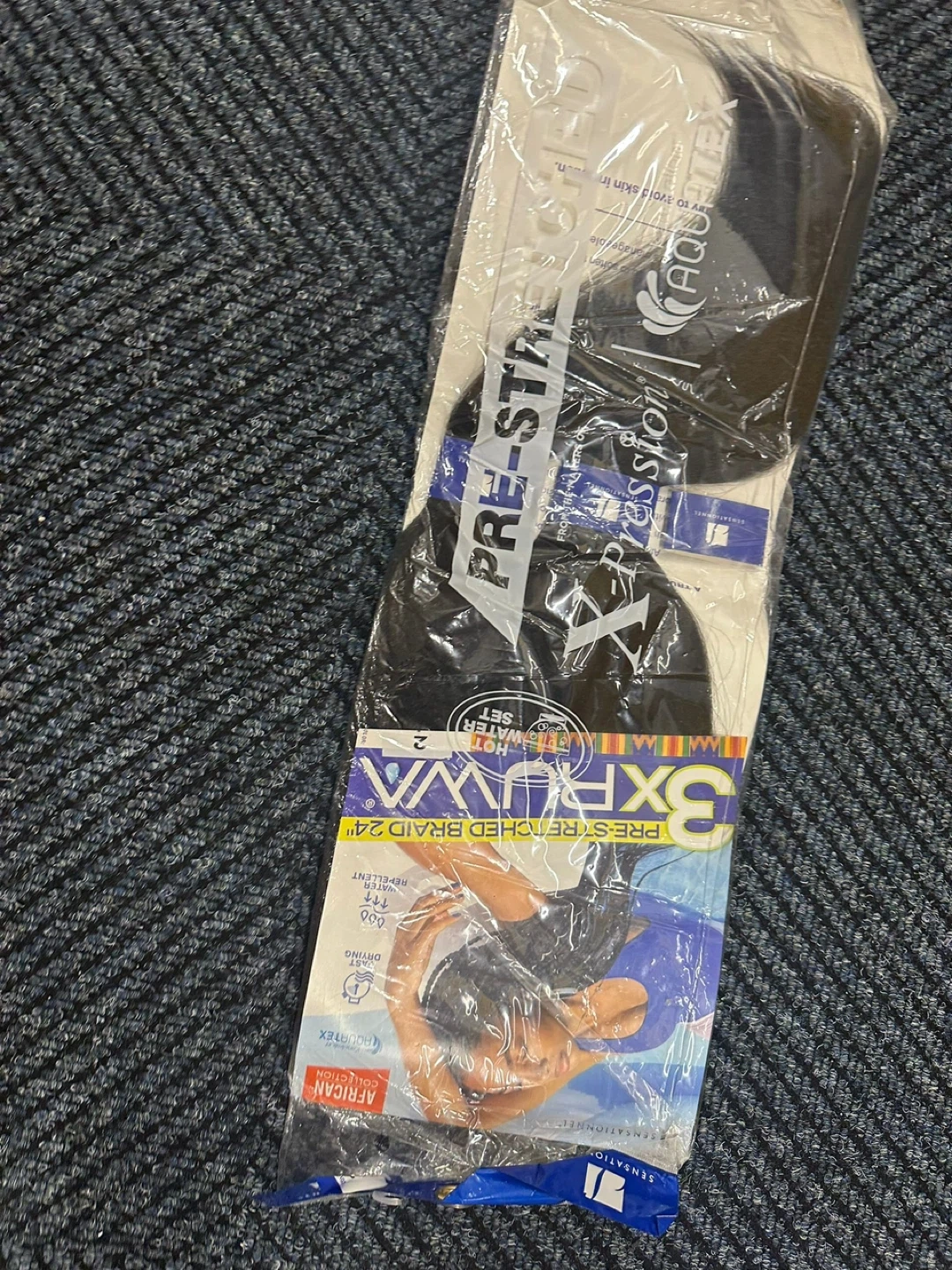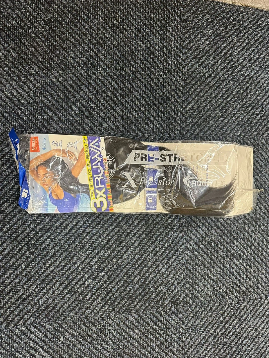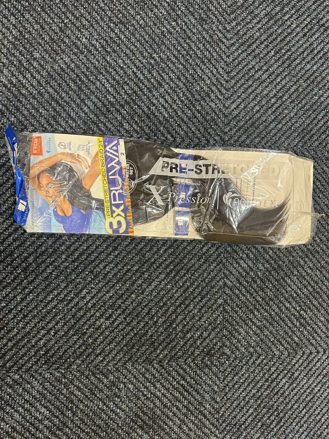 Selling a pack of 3X RUWA pre-stretched braid in 24 inches. It's from the X-Pression African Collection and features Aquatex fiber. Perfect for braiding!