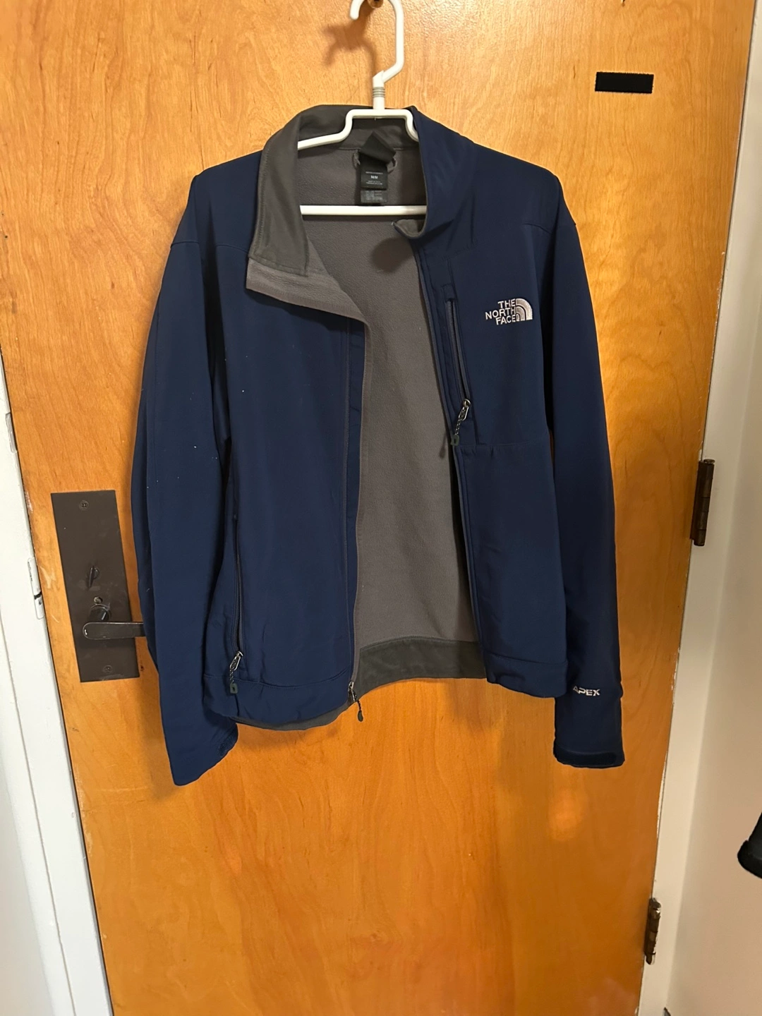 Selling a men's The North Face Apex jacket in size medium. It's a great jacket for layering or wearing on its own during milder weather. The jacket is like new in pristine condition and ready for a new owner!