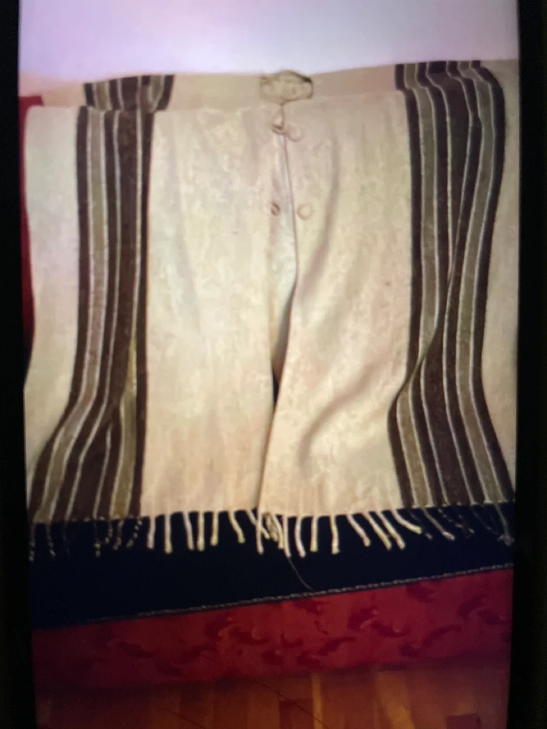 This is a stylish Mexican Poncho featuring a striped pattern and fringe detailing. It's perfect for adding a touch of warmth and style to your figure.The poncho was never used. It is in excellent condition and ready to be enjoyed! ๐ฅ