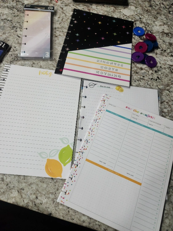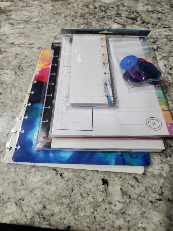 120Happy Planner bundle with lots of different inserts and pages. Includes weekly expense trackers, monthly calendars, and notes pages. Perfect for staying organized! open to offers