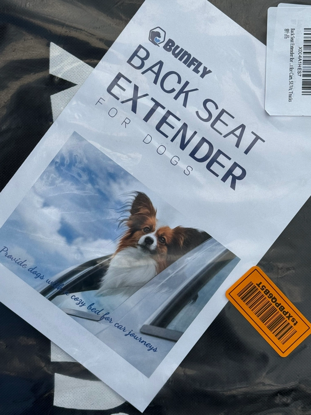 Selling a brand new Bunfly Back Seat Extender for Dogs! It helps provide dogs with a cozy bed for car journeys. The package includes all the parts and installation steps to easily set it up in your car. Keep your furry friend safe and comfortable on the road