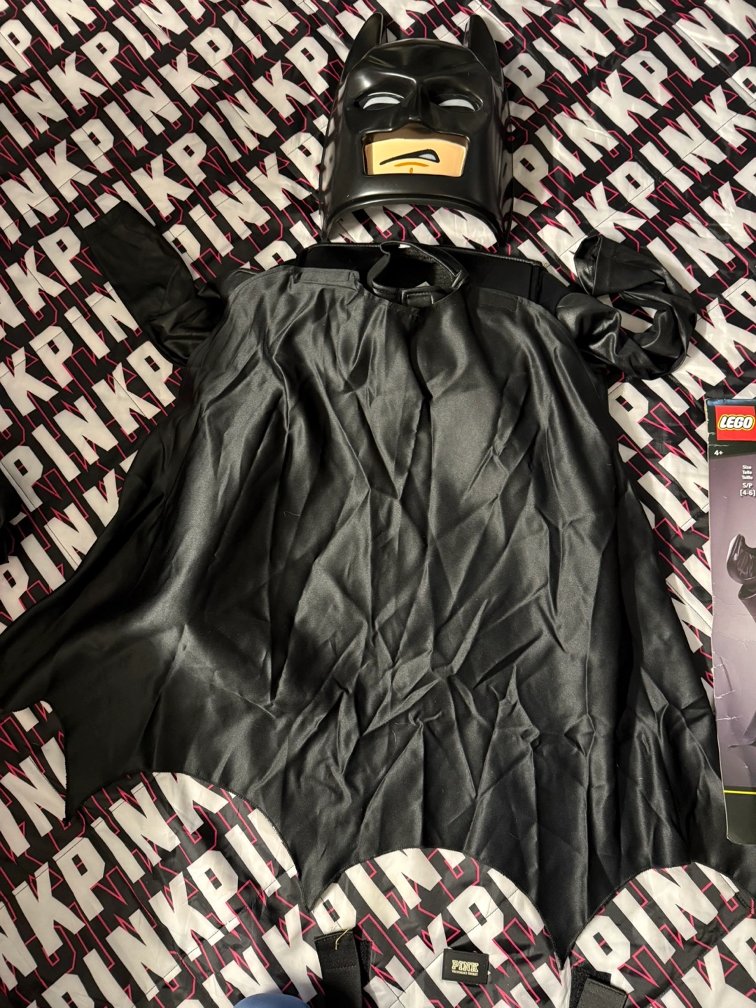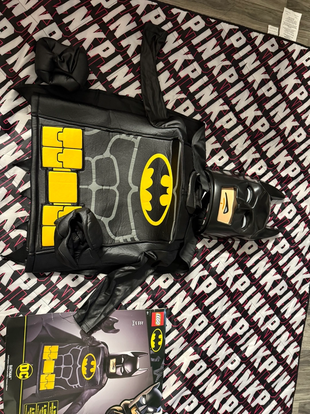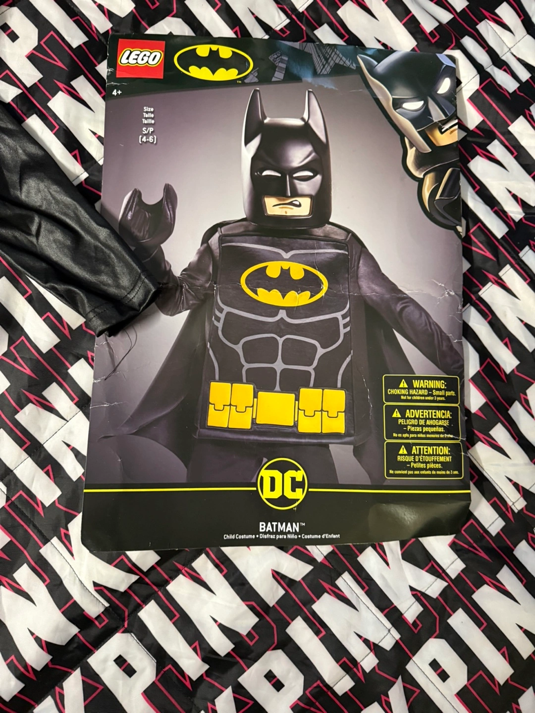 Selling a LEGO Batman child's costume in size small (4-6)! This costume is perfect for dress-up or Halloween. It features the classic Batman design and is sure to be a hit with any young fan of the Dark Knight