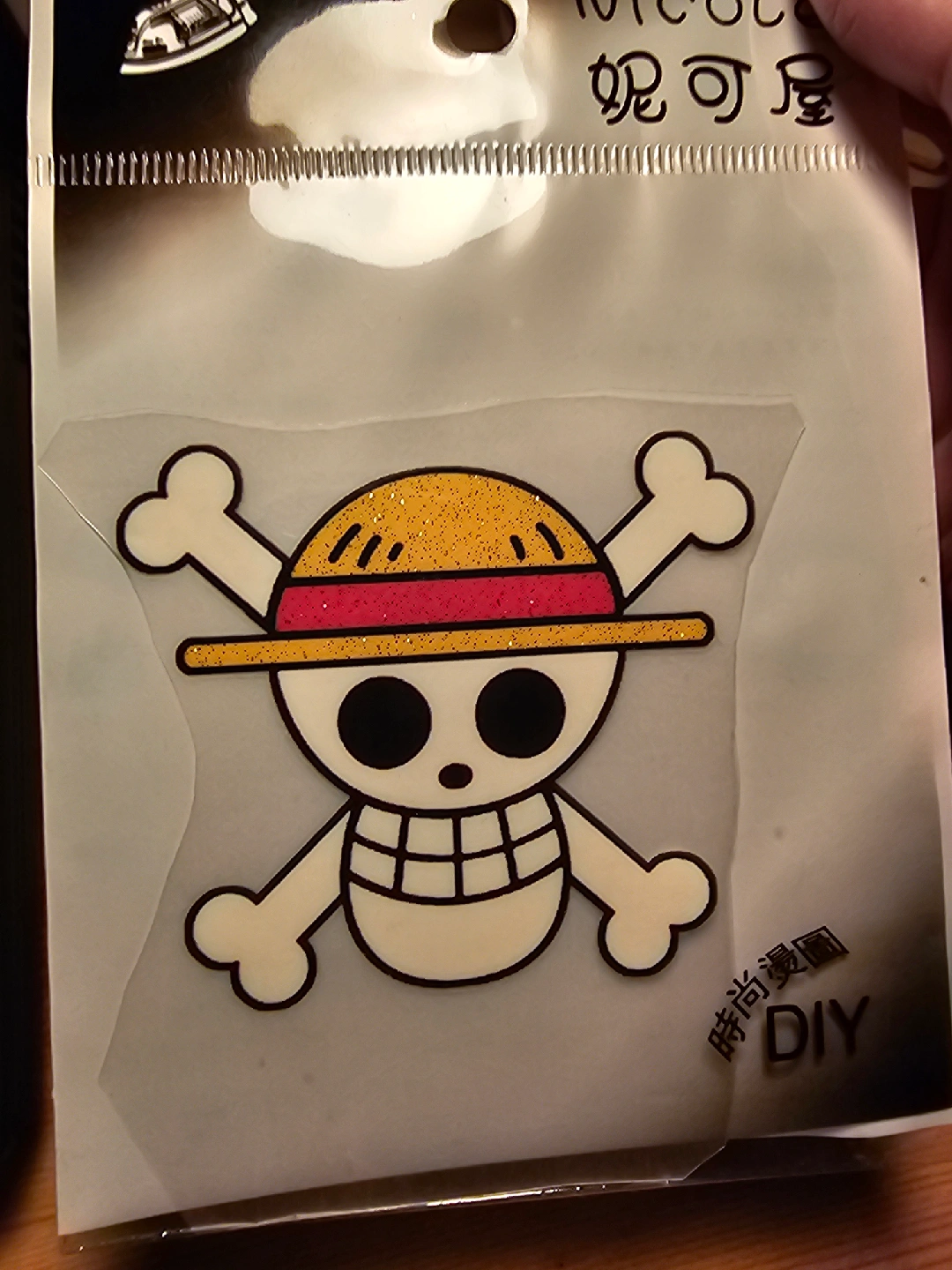 Add some fun to your clothes with this One Piece Jolly Roger fabric iron on sticker! Easy to apply with an iron, it's perfect for customizing t-shirts, bags, and more. And the straw hat is glittery!