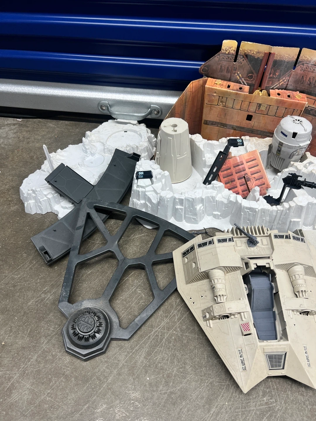 Selling a vintage Star Wars Hoth Ice Planet Adventure Set! It includes various pieces to recreate the iconic Hoth scenes. The set features detailed components like the Snowspeeder cockpit, radar dish, and various terrain pieces. A great addition for any Star Wars collector! Used and pre owned condition not complete parts only