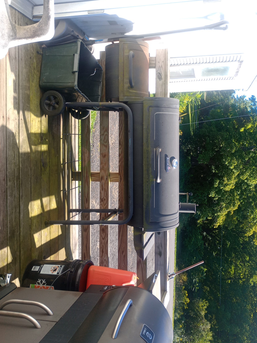 Selling a Char-Broil smoker grill! It's in good condition and ready for your next barbecue. Perfect for smoking meats and grilling outdoors. it also has a little starter box, a charcoal thing so you can light the charcoal before you put it in the box and a book