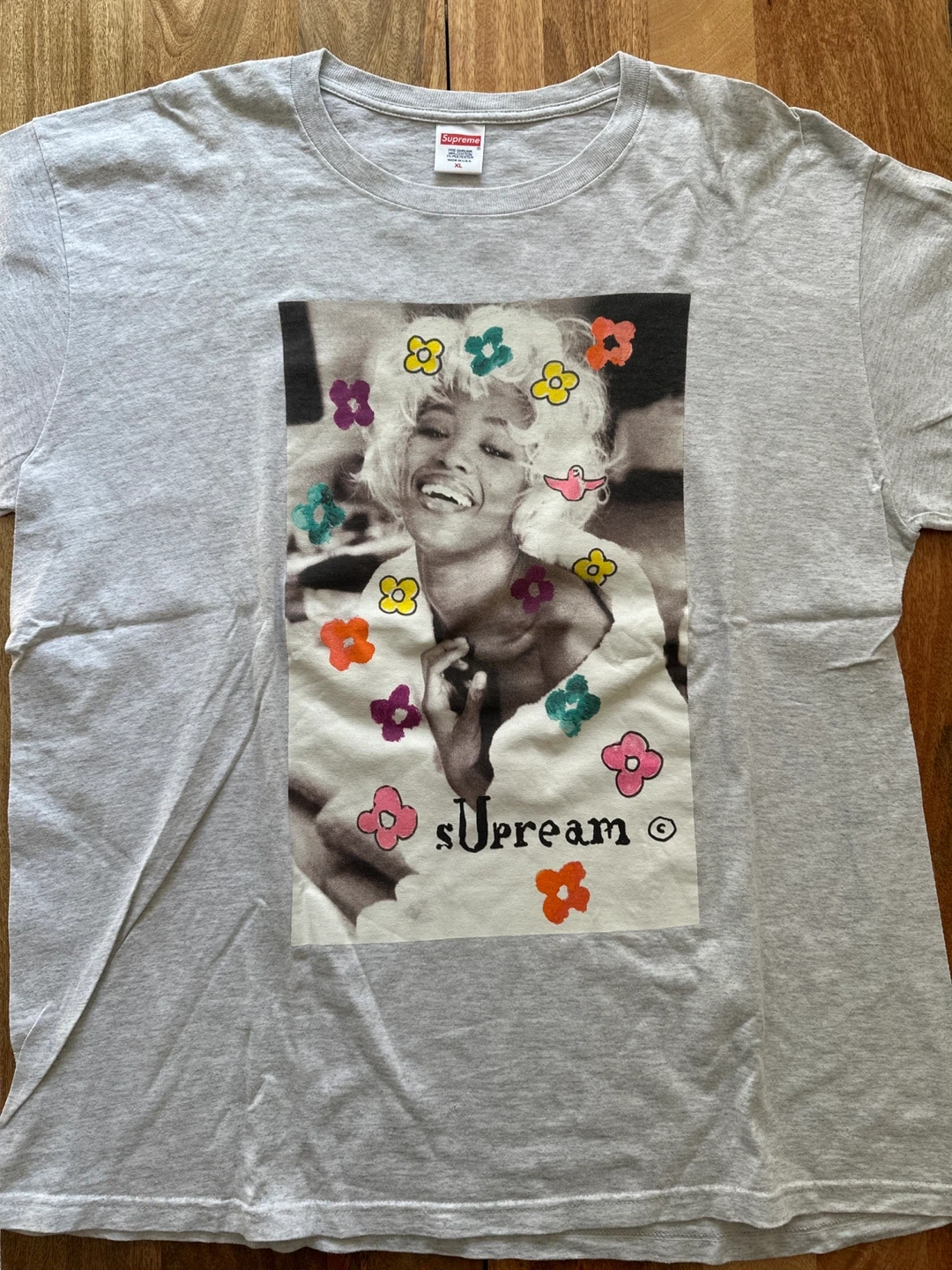 Supreme Naomi Tee in heather grey, size XL. Features a graphic print. Great condition!