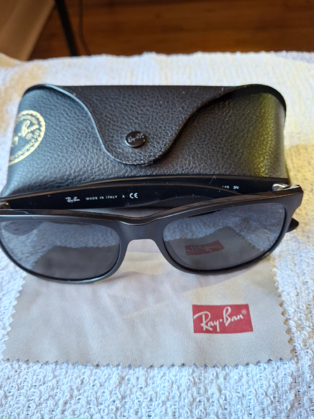 Selling a pair of Ray-Ban RB 4202 Andy sunglasses in black. They are in great condition and come with the original case and cleaning cloth. The sunglasses have the following measurements: 55[]17 145 3N.