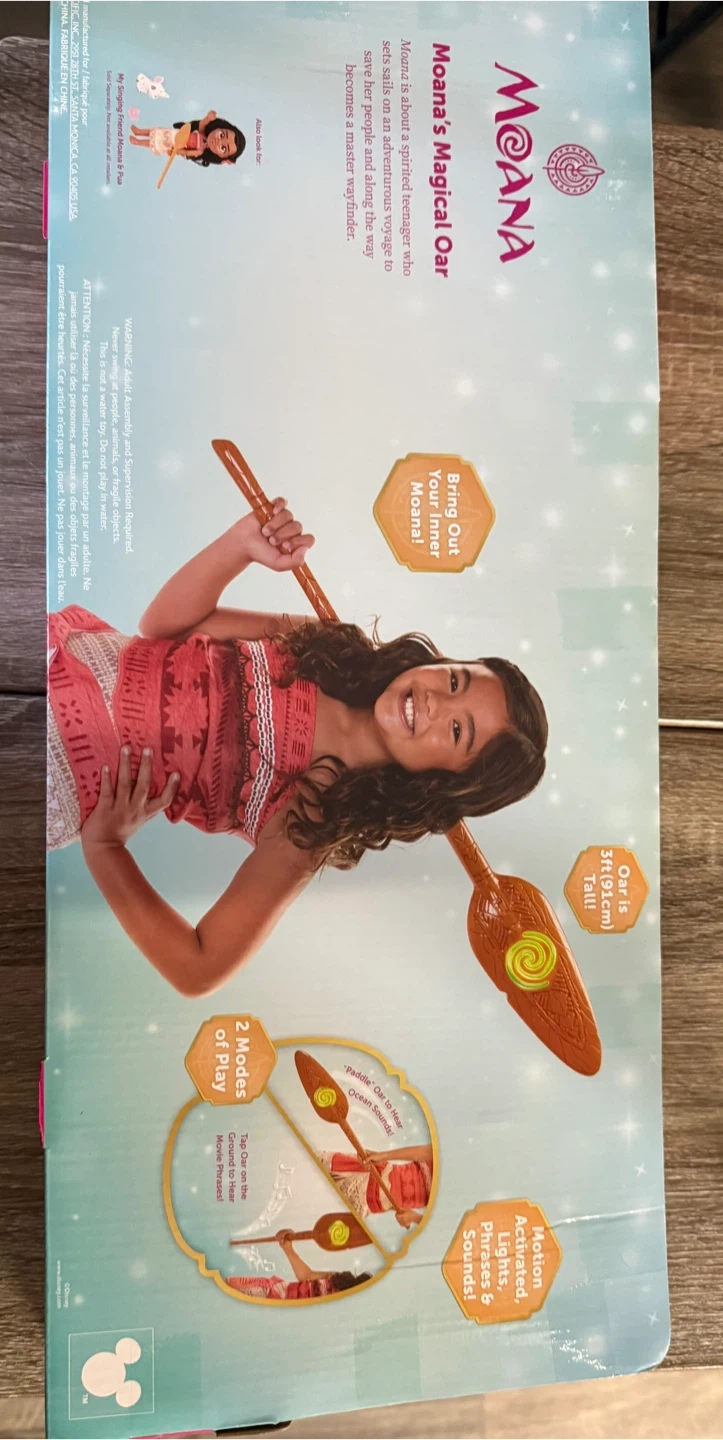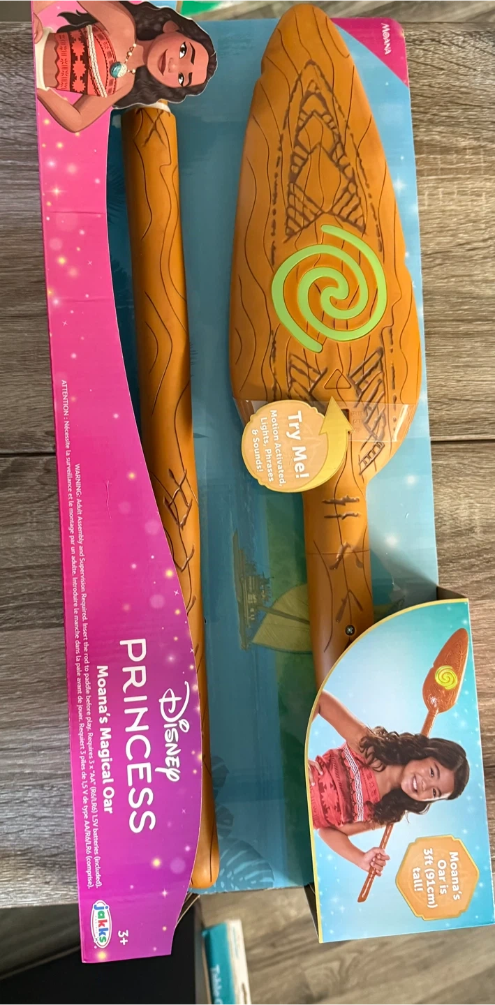 I'm selling a brand new, in-box Disney Princess Moana's Magical Oar! It's 3ft (91cm) tall and has motion-activated lights and sounds. Great for kids ages 3+