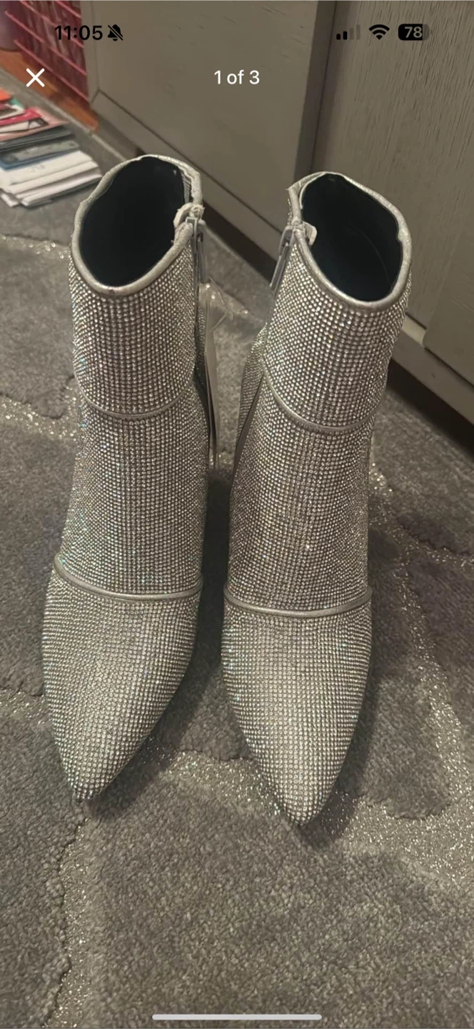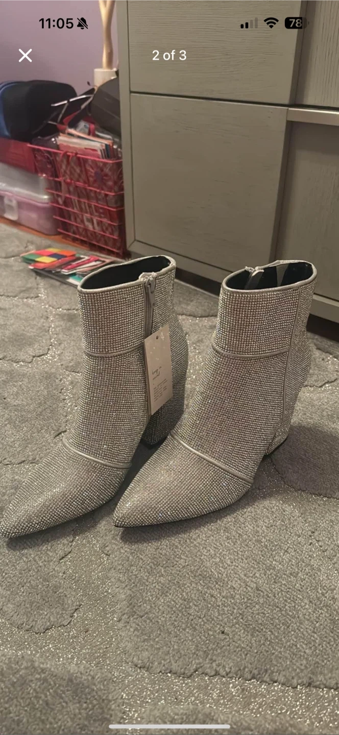 These rhinestone ankle boots are sure to make a statement! They're perfect for adding a touch of sparkle to any outfit. Size 8