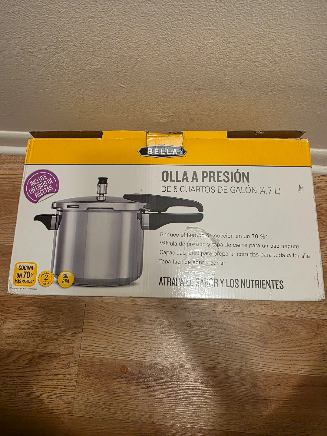 I'm selling a brand new Bella 5-quart pressure cooker! It's still in the original box and has never been used. This pressure cooker can reduce cooking time by up to 70% and features a pressure valve and lid lock for safe use. It's the perfect size for preparing meals for the whole family!