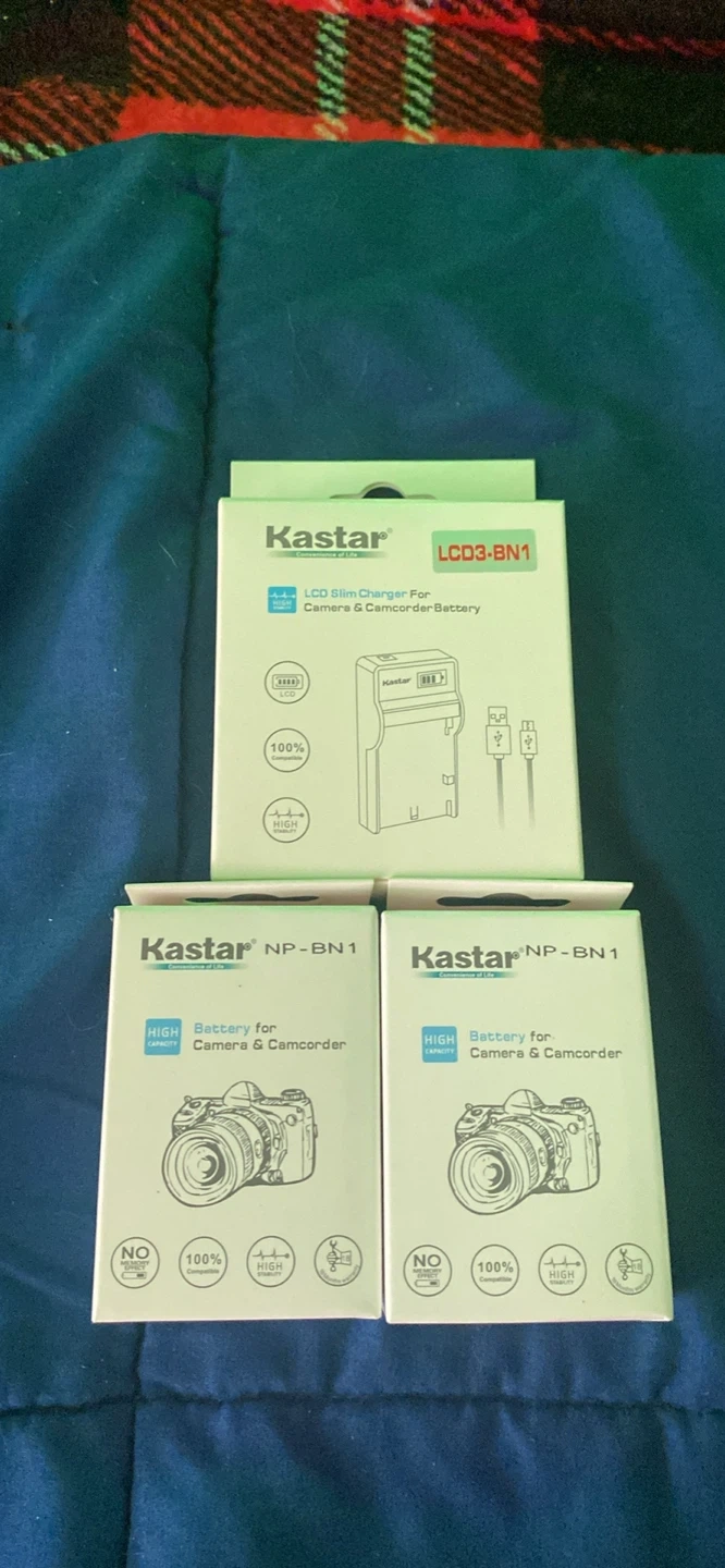I'm selling a brand new Kastar NP-BN1 battery and LCD slim charger set for cameras and camcorders. The charger features: - Kastar ultra slim LCD USB charger, new smart LCD design, easy to carry - Intelligent LCD charger displays charging status and battery capacity - Micro USB input multiple charging option, come with a Micro USB cable
