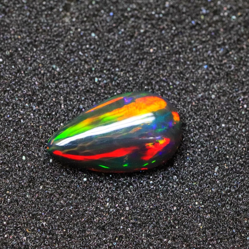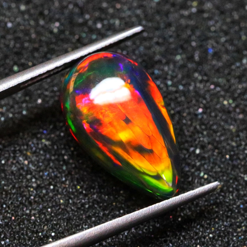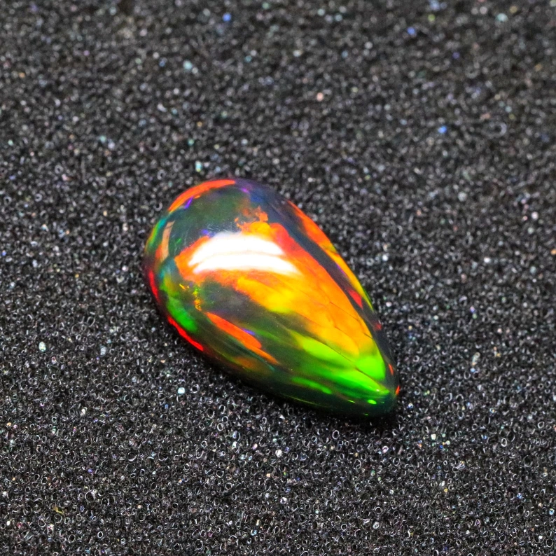 This stunning 3.30-carat opal cabochon showcases a rare honeycomb pattern with a vibrant play of color, including shades of red, green, orange, and blue. Its elegant pear shape and flawless surface make it an ideal choice for a custom ring or pendant, or a treasured addition to any gemstone collection. Stone: Honeycomb Opal Weight: 3.30 carats Dimensions: 16 x 9.50 x 4.50 mm Shape: Pear Cabochon Price: $337 Shipping: Free Shipping Payment: We accept secure payments via CashApp, Debit, and PayPal. Video: See the incredible fire of this gem in our video: https://m.youtube.com/watch?v=ABYg4KhA1Qo Check out more of our unique pieces at: www.OpalandRingQueen.com