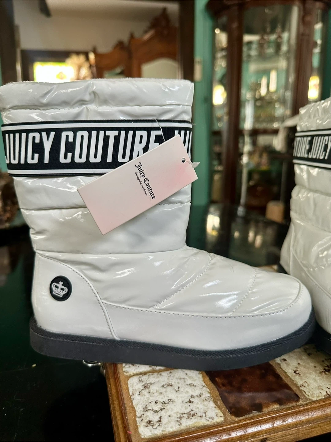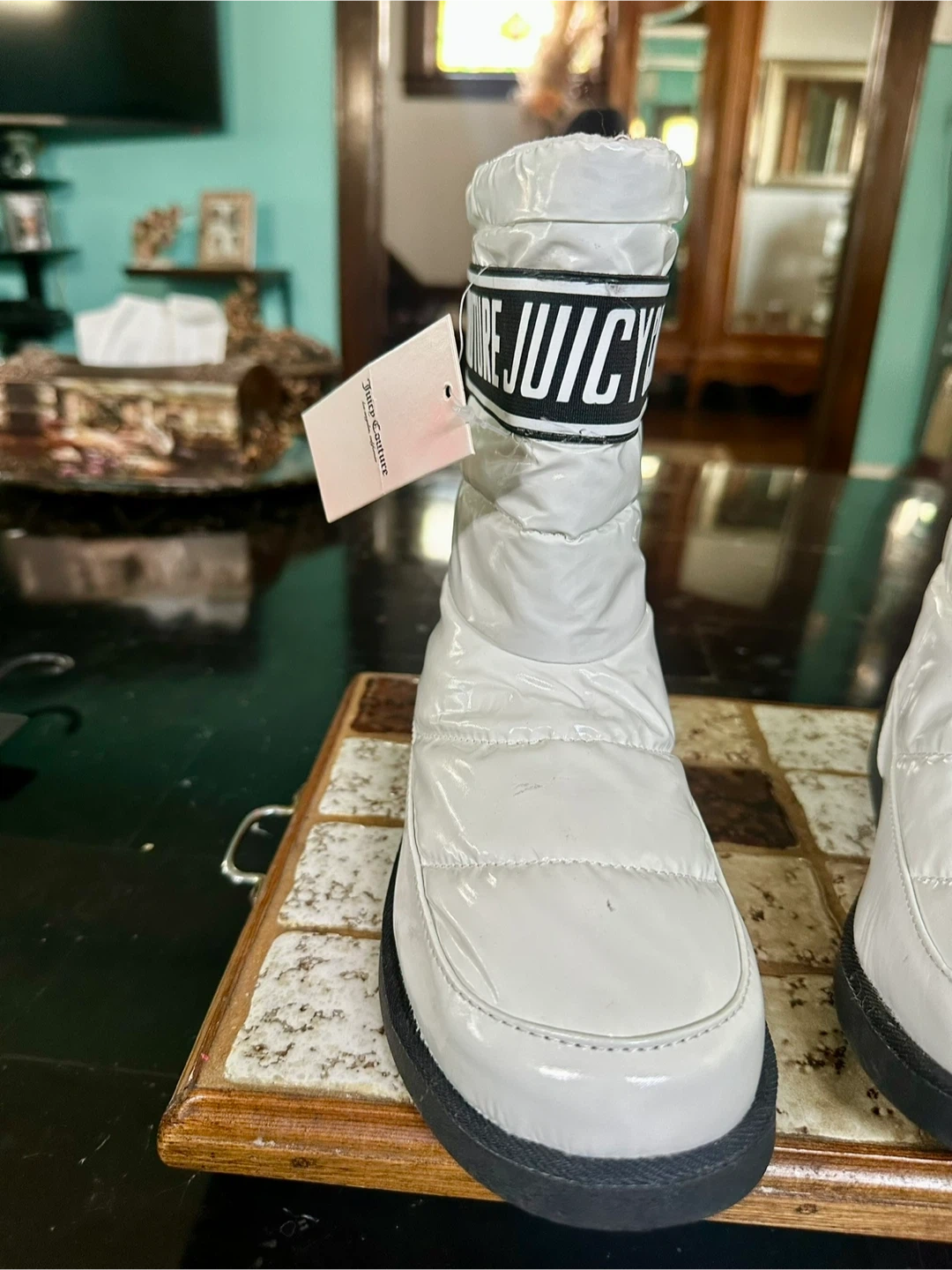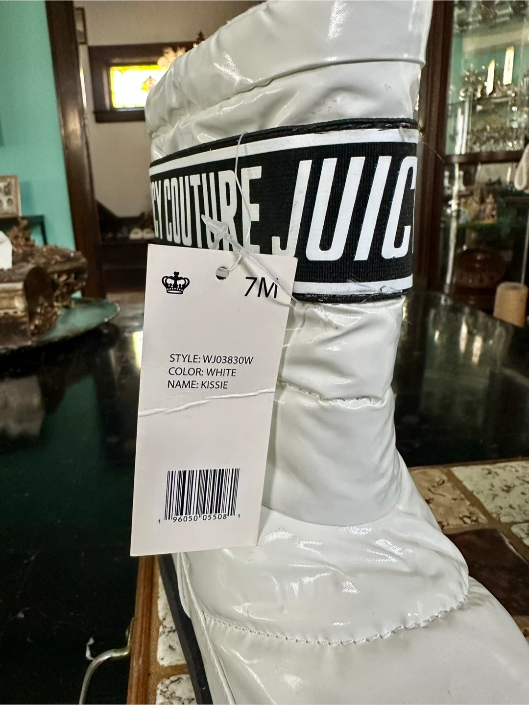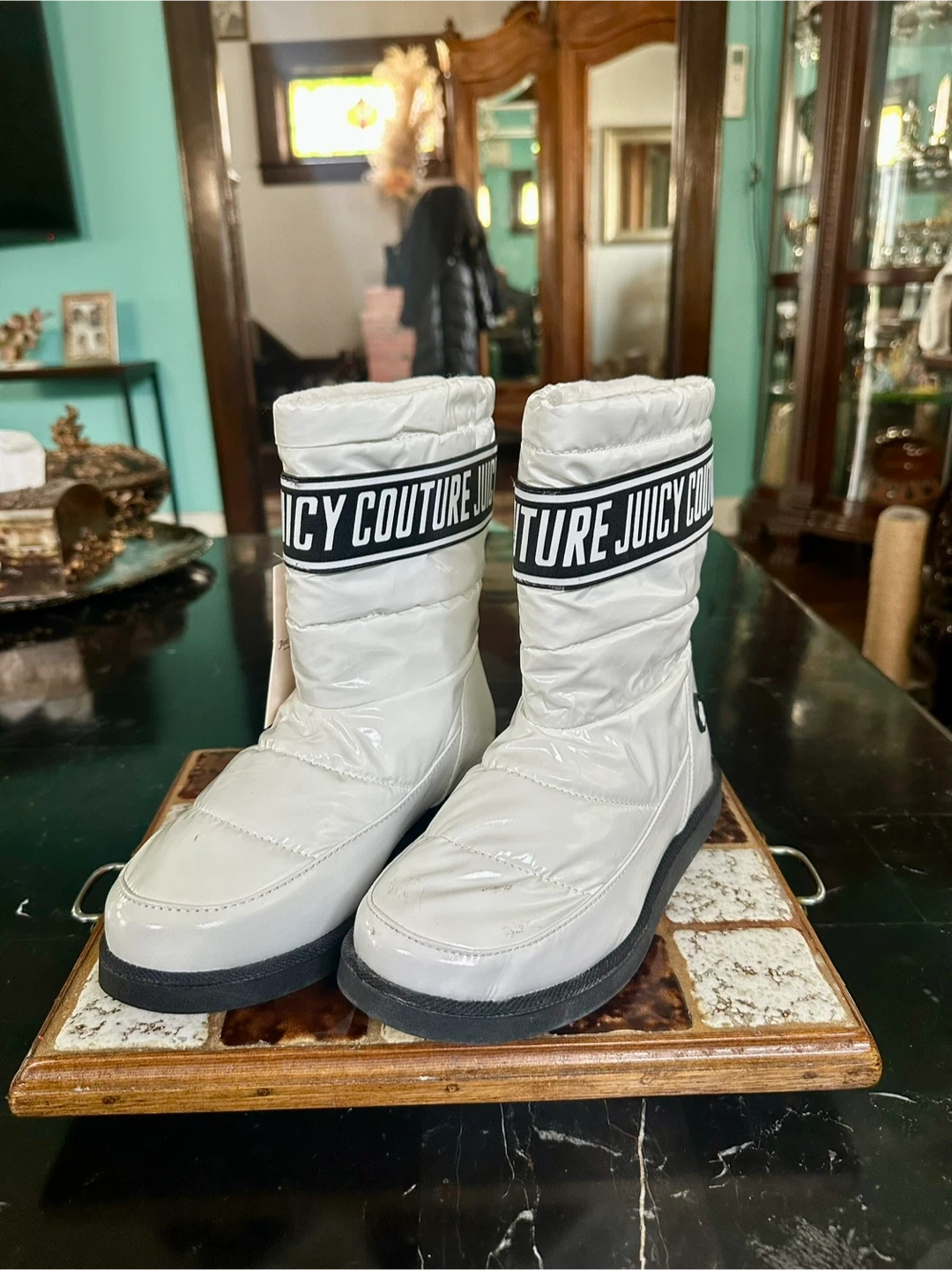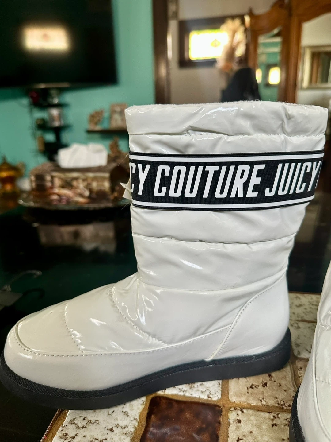 21Cute Juicy Couture Kissie winter boots in a size 7! These boots are white with the Juicy Couture logo on the band. They're perfect for keeping your feet warm and stylish during the colder months