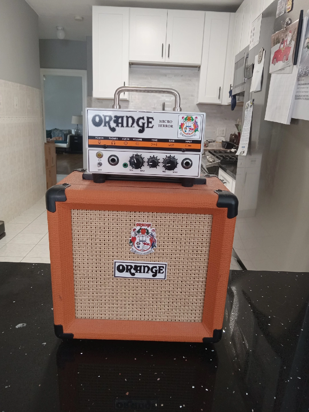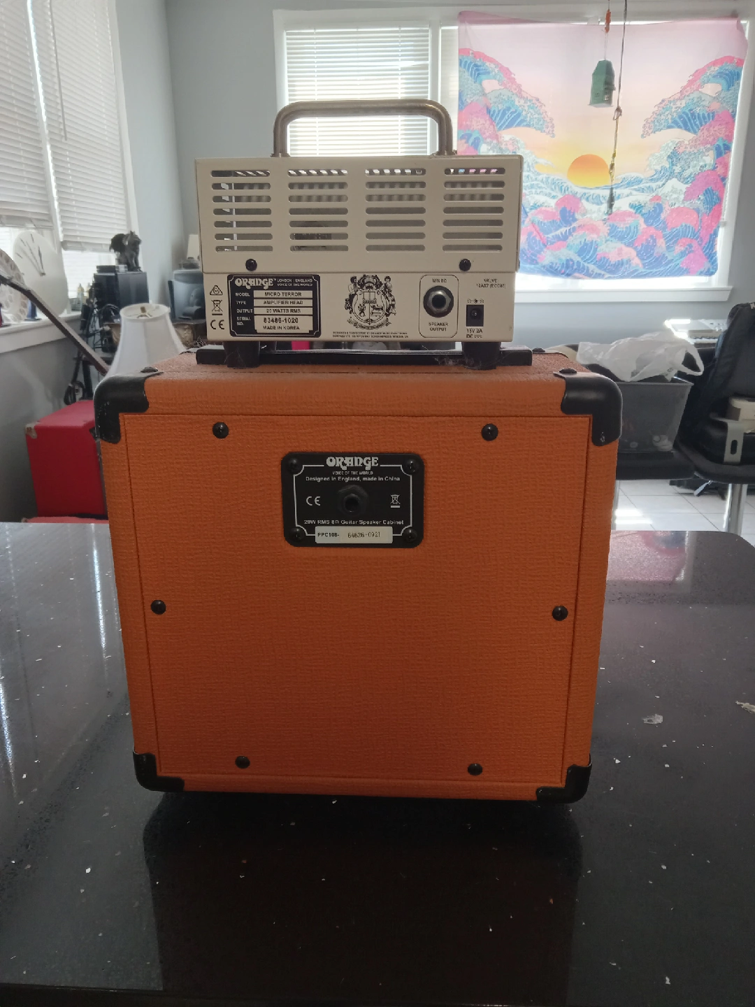 32Selling an Orange Micro Terror amp head with the PPC108 cabinet. Both are in great condition and ready to rock! The Micro Terror is a hybrid amp head, known for its portability and surprisingly loud sound. The PPC108 cabinet is a perfect match, delivering a punchy tone for practice or small gigs