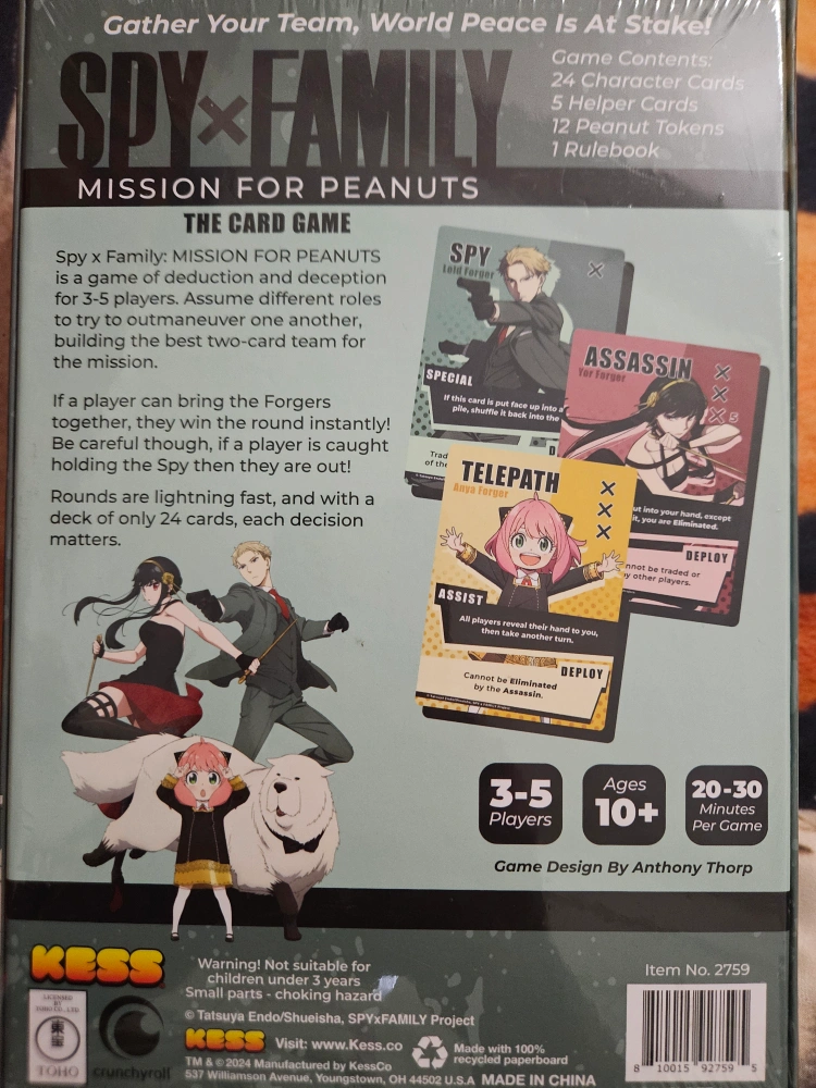 87Selling a brand new, sealed Spy x Family: Mission for Peanuts card game! It's a game of deduction and deception for 3-5 players, ages 10+. Each game lasts about 20-30 minutes. Gather your team, world peace is at stake!