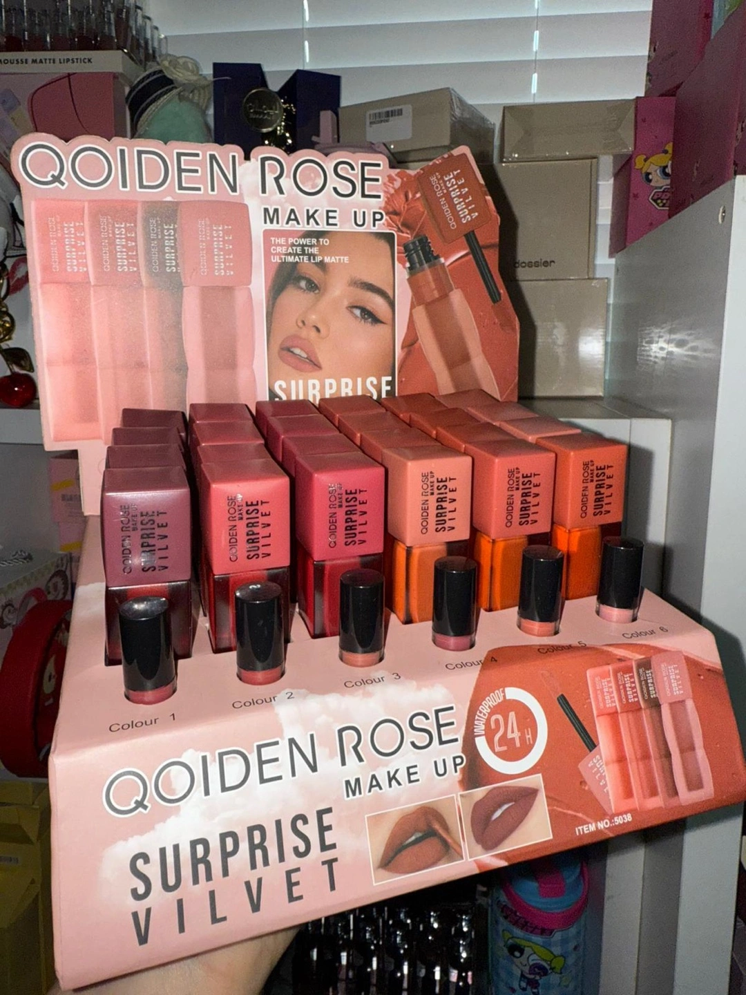 I'm selling QoIden Rose Surprise Velvet matte lipsticks. They come in a variety of colors, from Colour 1 to Colour 6. These lipsticks are designed to be long-lasting and give you the ultimate matte lip look