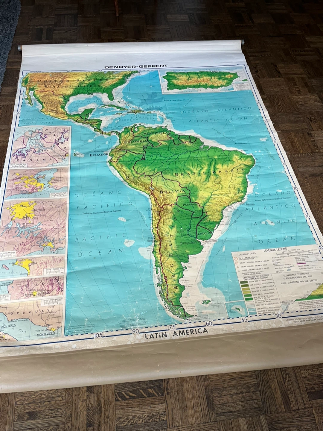 Here's a Denoyer-Geppert map of Latin America! Great for educational purposes or as a cool vintage decor piece