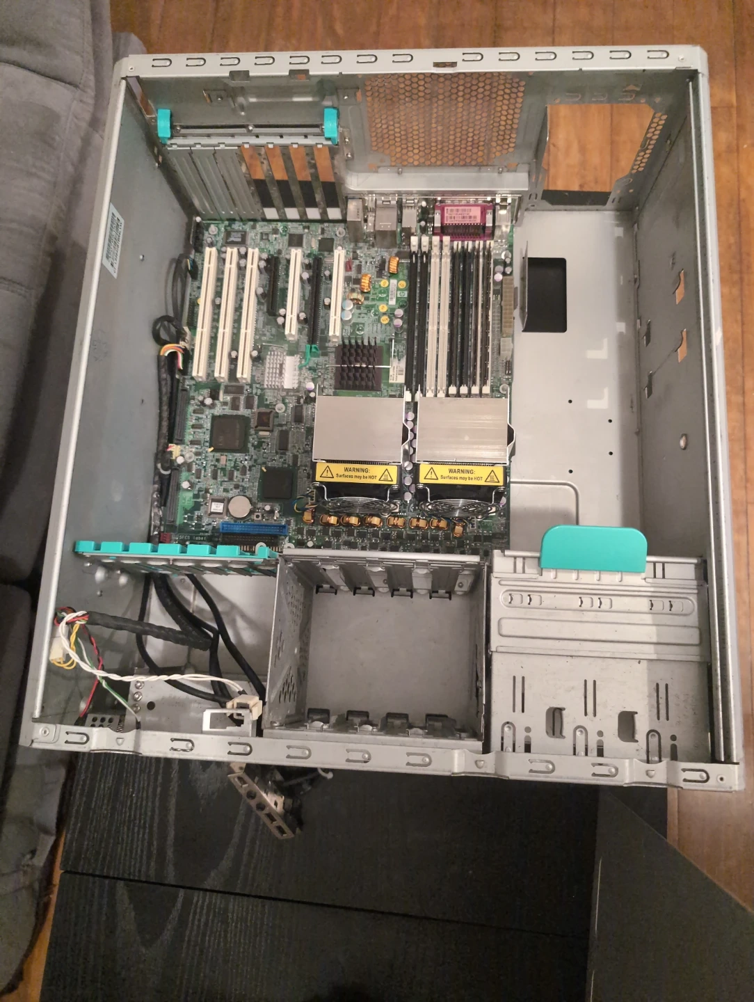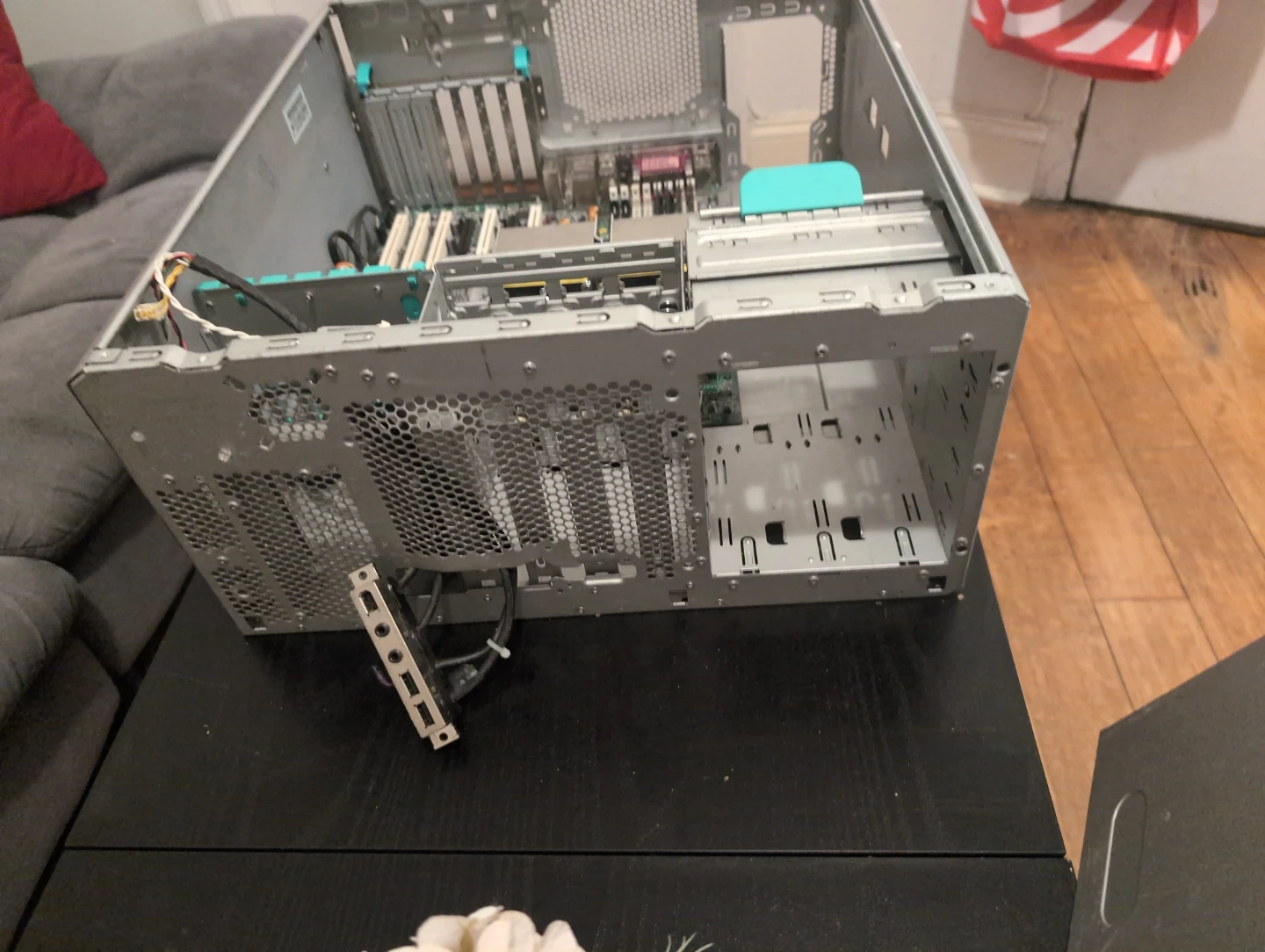 This is an HP server tower case. It includes the motherboard and some internal components. The case is metal. Need power supply components and an adapter to plug the hard drives in using SATA 3. Solid machine that can run up to 20 servers at a time!