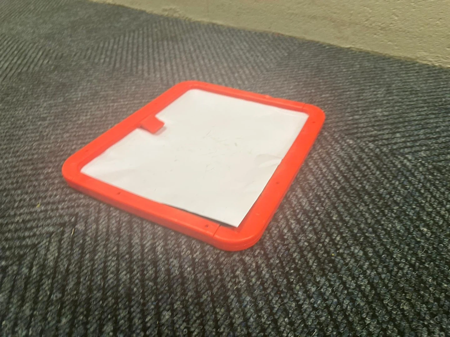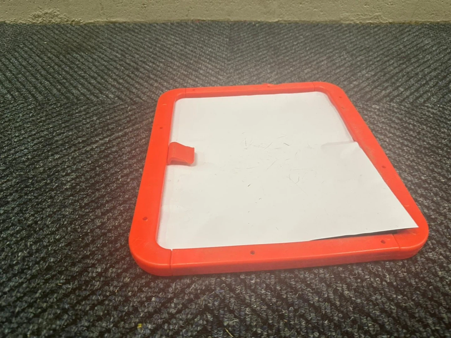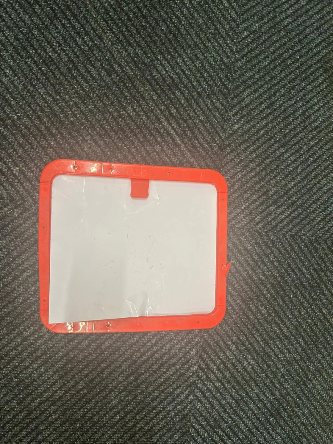 Selling a kids doodle board with a red frame. It's in used condition, but still has plenty of life left for creative fun