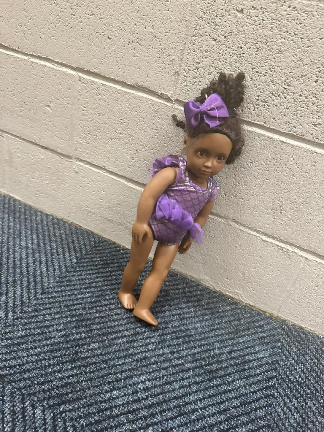 Selling an American Girl doll dressed in a lovely purple leotard with matching bow! She's in great condition and ready for a new home! Perfect for any doll lover or collector