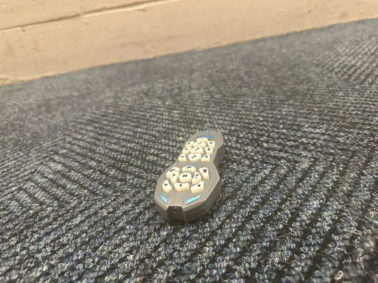 Selling a gray toy remote control. It has a lot of buttons and a blue accent.