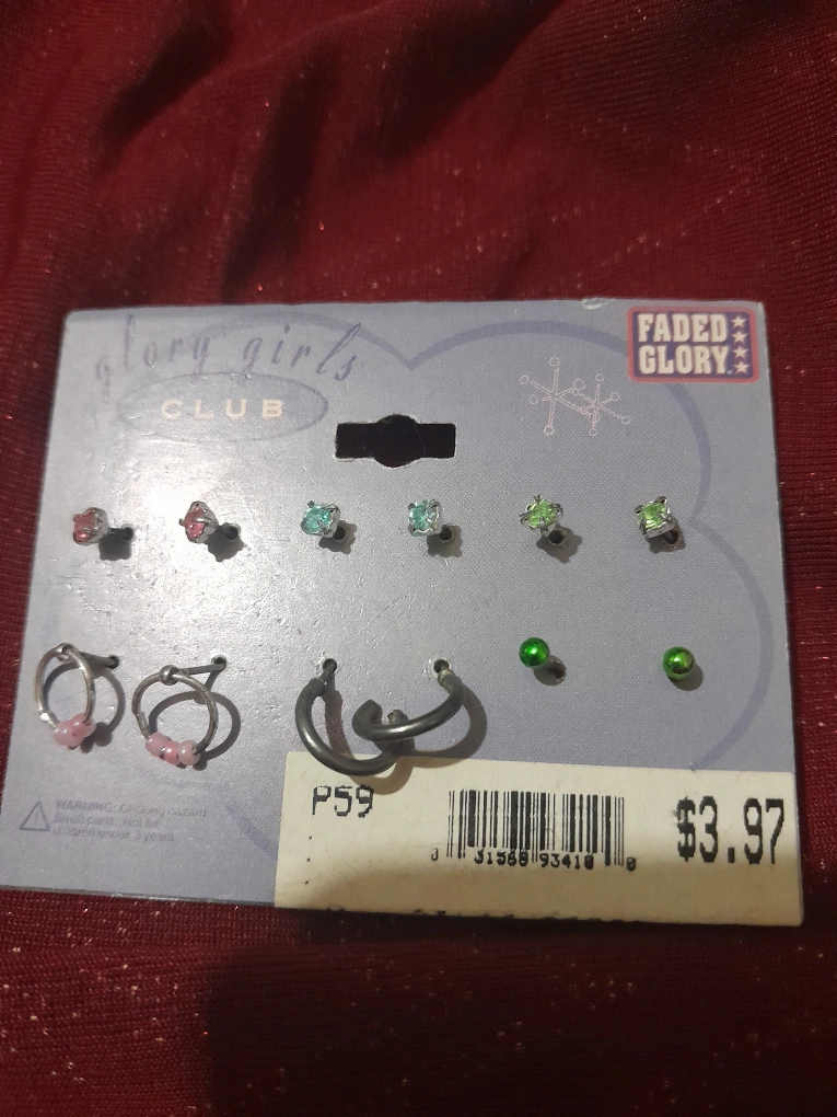 232Selling a cute earring set from Faded Glory's Girls Club! It includes a variety of styles and colors, perfect for adding a little sparkle to any outfit. The original price was $3.97