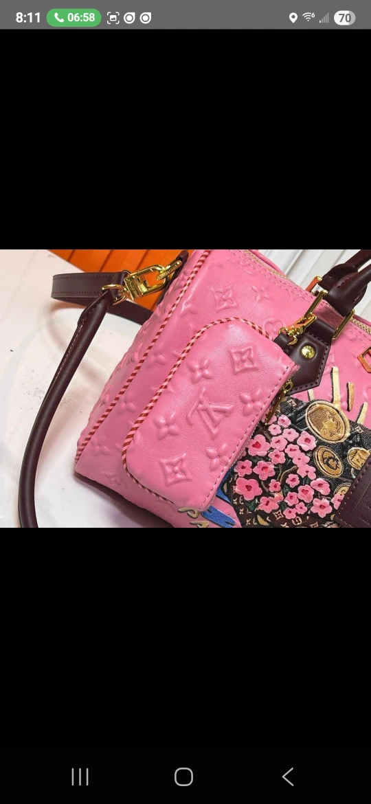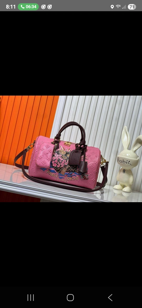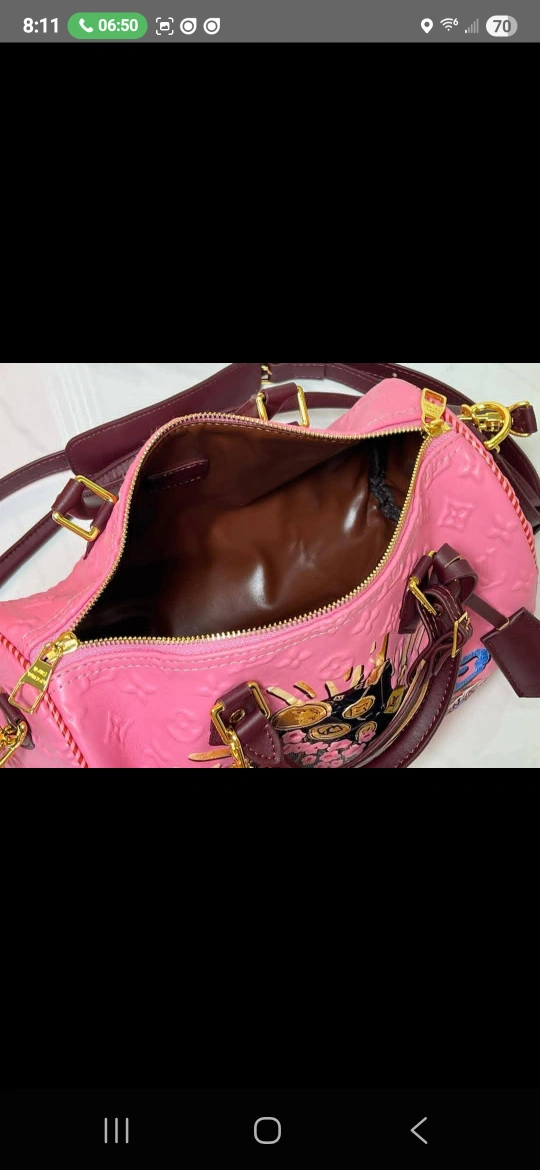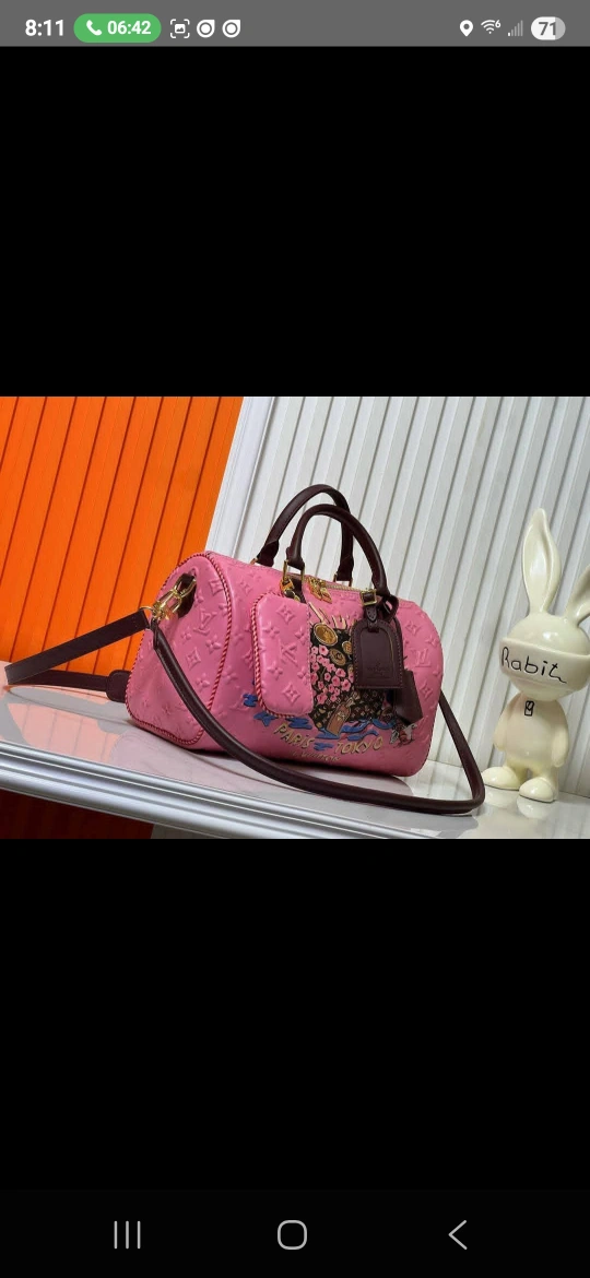 This is a Louis Vuitton satchel bag in pink leather. It features a unique design with floral accents and the words 'Paris Tokyo' on the front. Perfect for adding a pop of color to your outfit!
