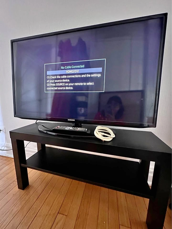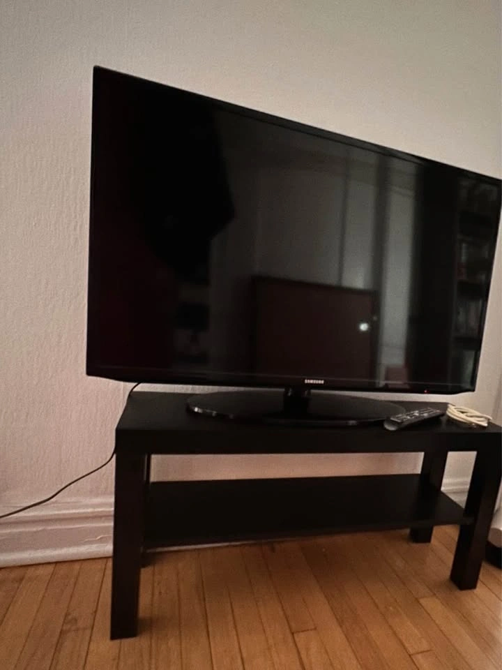 65Downsizing and priced to sell! TV is great and throwing in the stand as well so perfect for a student, bedroom or living area! 📺Samsung Smart TV 40” screen TV: 36.5” x 21.25” + base (see photo/video) Wooden stand: 35.5” x 17.75” x 10.25” Comes with original remote (and 2 AAA batteries) and HDMI cable