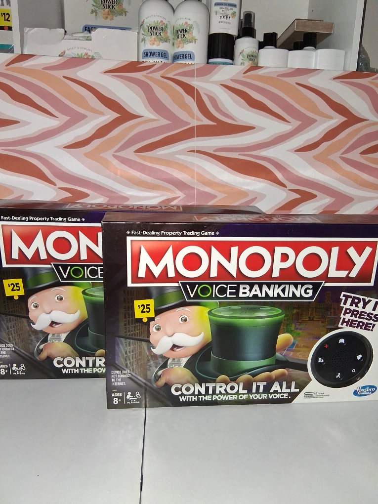 147Selling a Monopoly Voice Banking board game! Control it all with the power of your voice. It's a fast-dealing property trading game. Suitable for ages 8+. $20.00 ea.