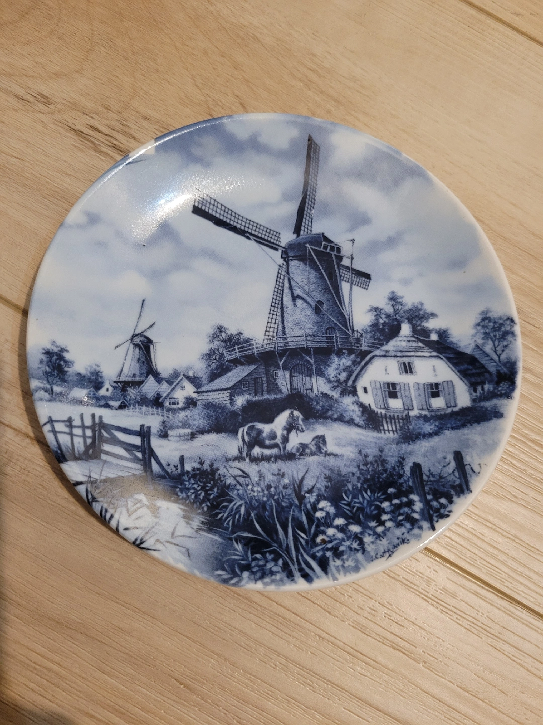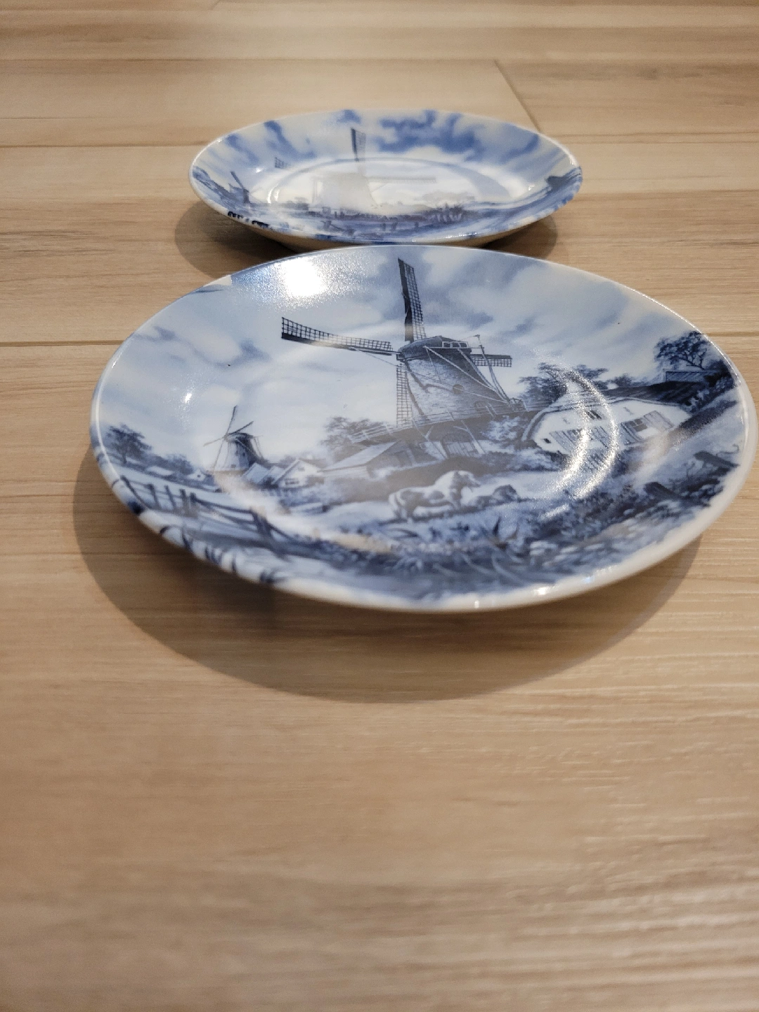 Selling a pair of lovely Delfts Blauw decorative plates from 1984. They feature a charming windmill scene in classic blue and white. The plates are approximately 5 inches in diameter and would make a great addition to any collection. Both together for price.Ready to hang. Good condition. Feel free to check out my other unique items listed.