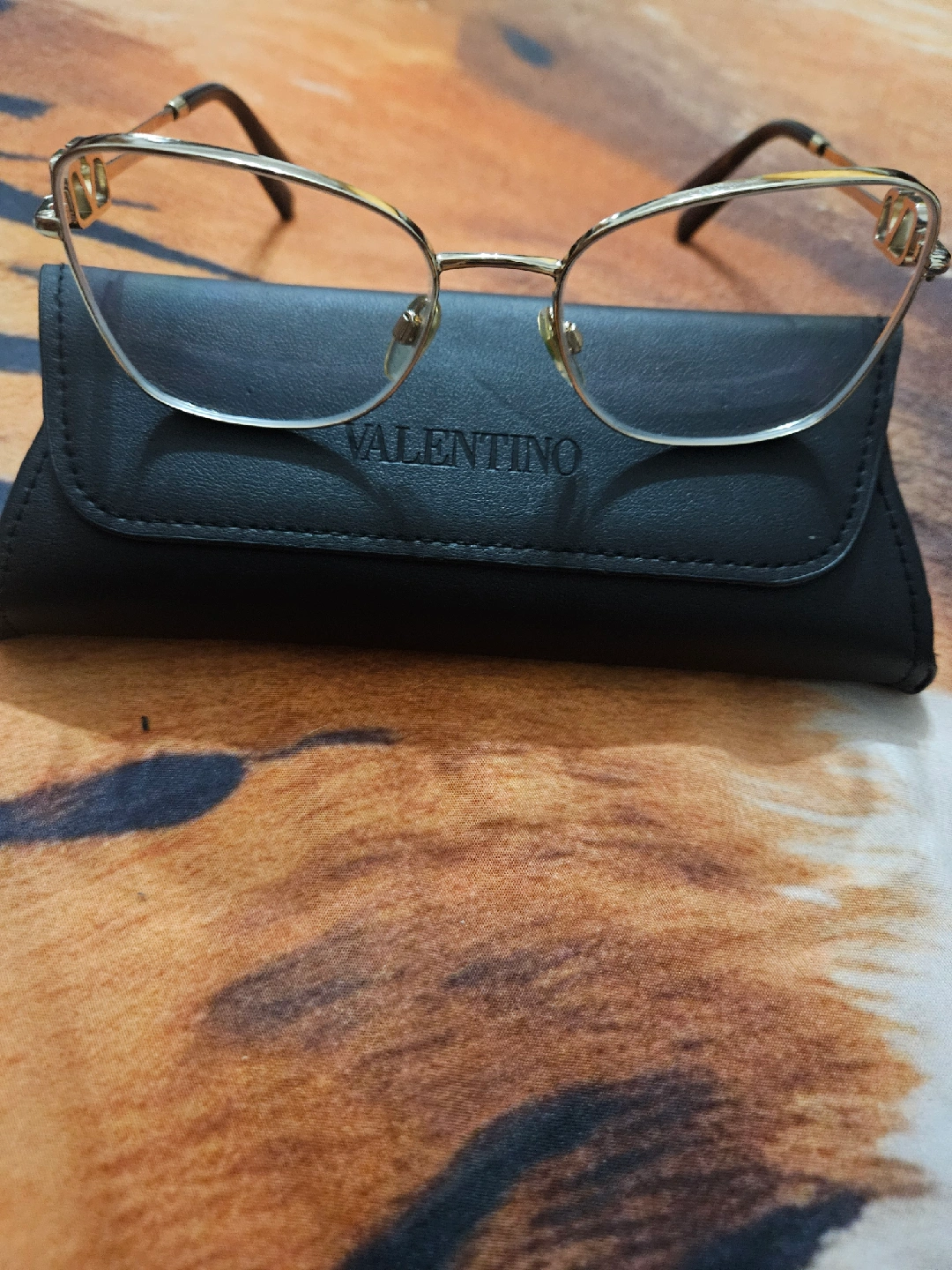 87Selling a pair of Valentino eyeglasses with gold frames! They come with a case. Both Vs on the side are diamonded out. Vert elegant for daily wear.