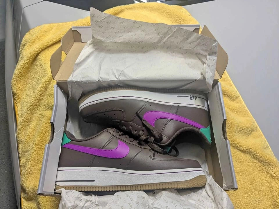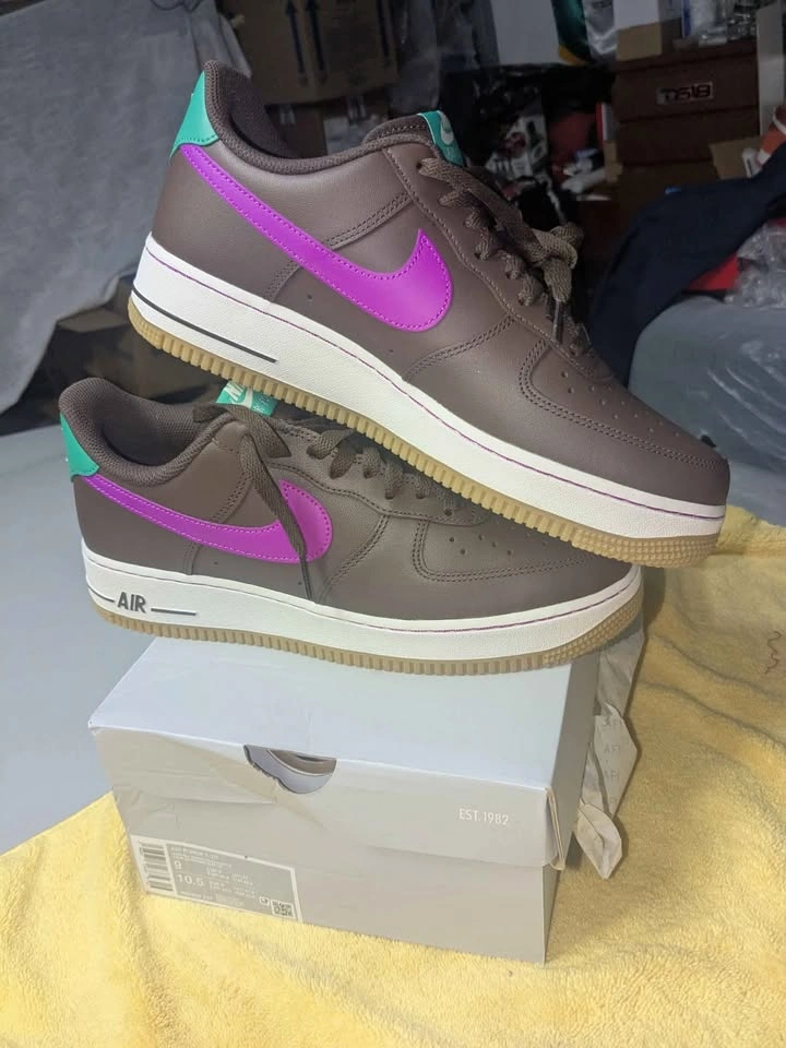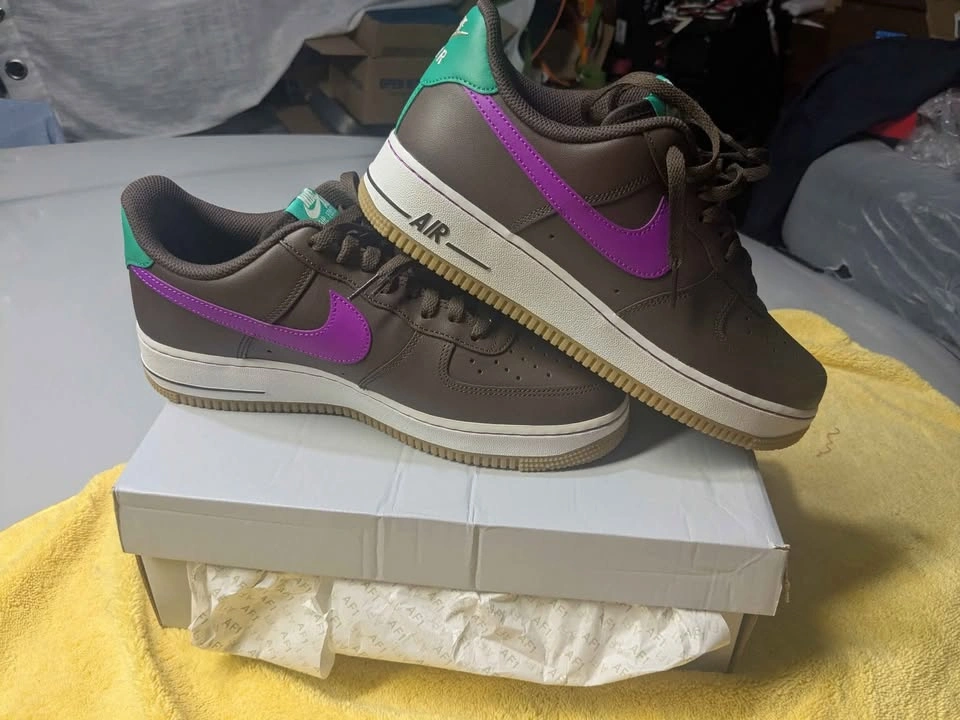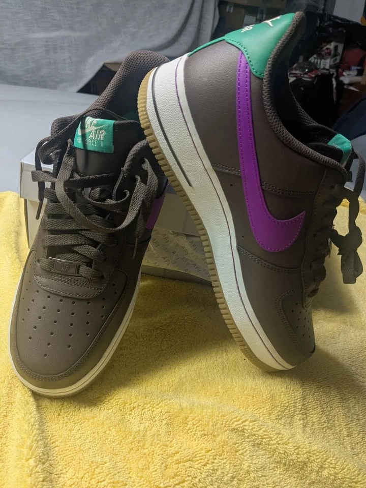87Size#9 Mens-10.5 Women- NIKE AF1 '07 - Color Baroque Brown/Vivid Purple/Stadium Green Light- BRAND NEW: $110- Pick up & Ca$h Only - If you live nearby Elgin, I can drop off at front door for addtnl $10 bucks.