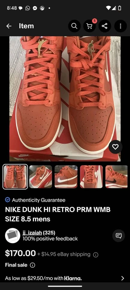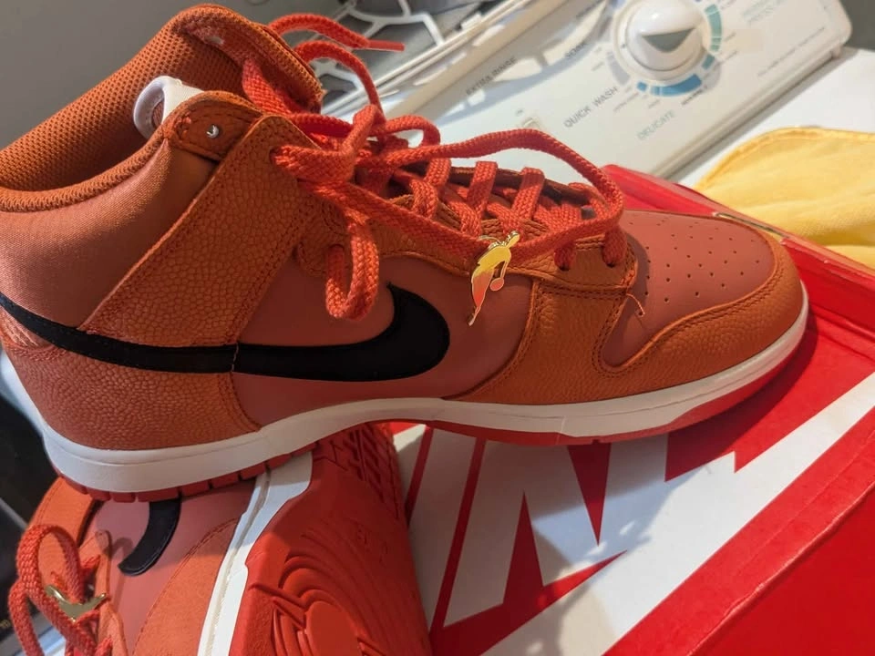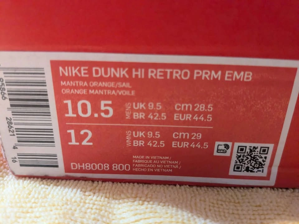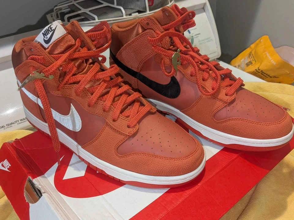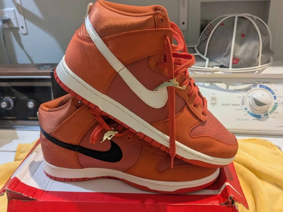 87Mens Size#10.5 /12 Women- NIKE DUNK HI RETRO- PRM EMB - Color Mantra Orange/Sail - Golden NBA Pins Collectables - BRAND NEW - $135- Pick Up & Ca$h Only.