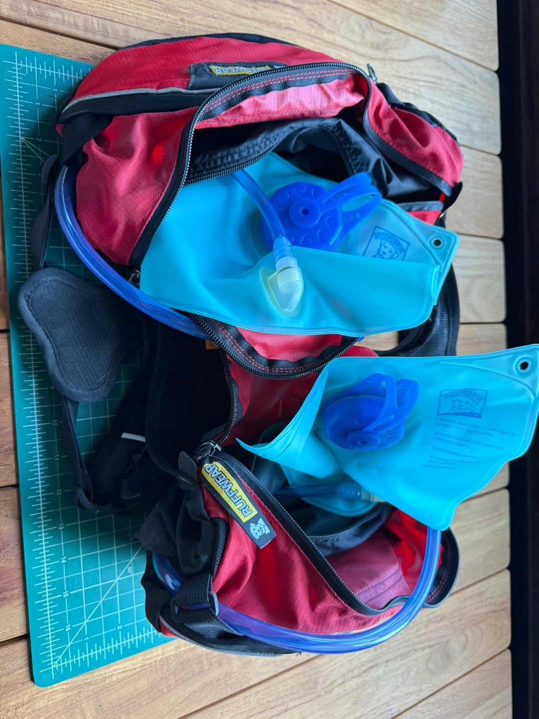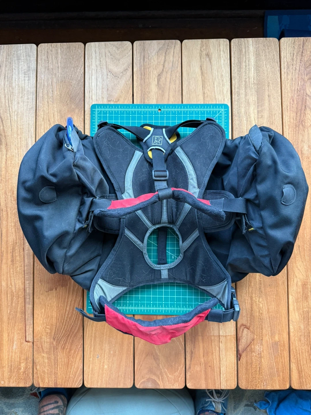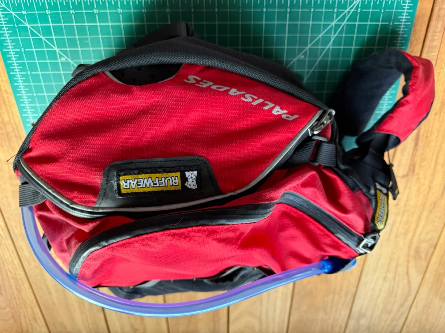 Selling a Ruffwear Palisades Pack in size medium. It's a great backpack for dogs who love to hike! It features removable bladders for water and plenty of room for other essentials.