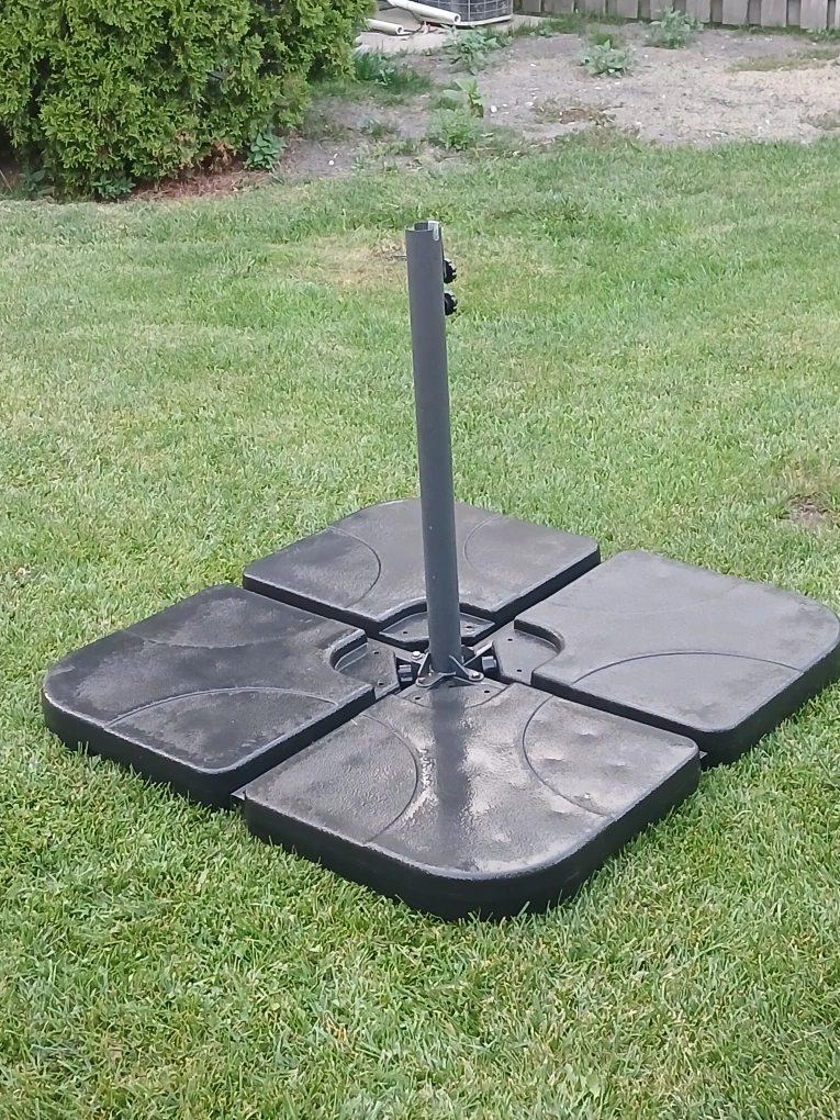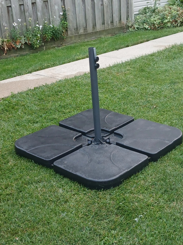 Selling an umbrella base with the weights. It's in good condition and ready to use. Perfect for keeping your patio umbrella secure!