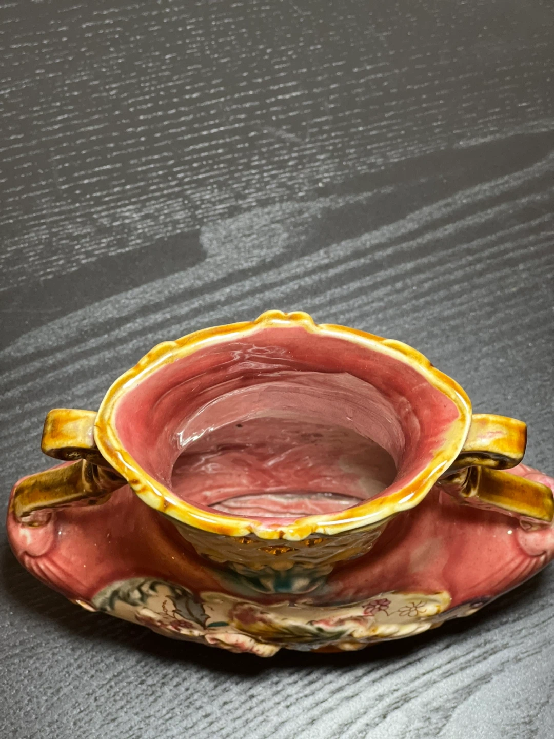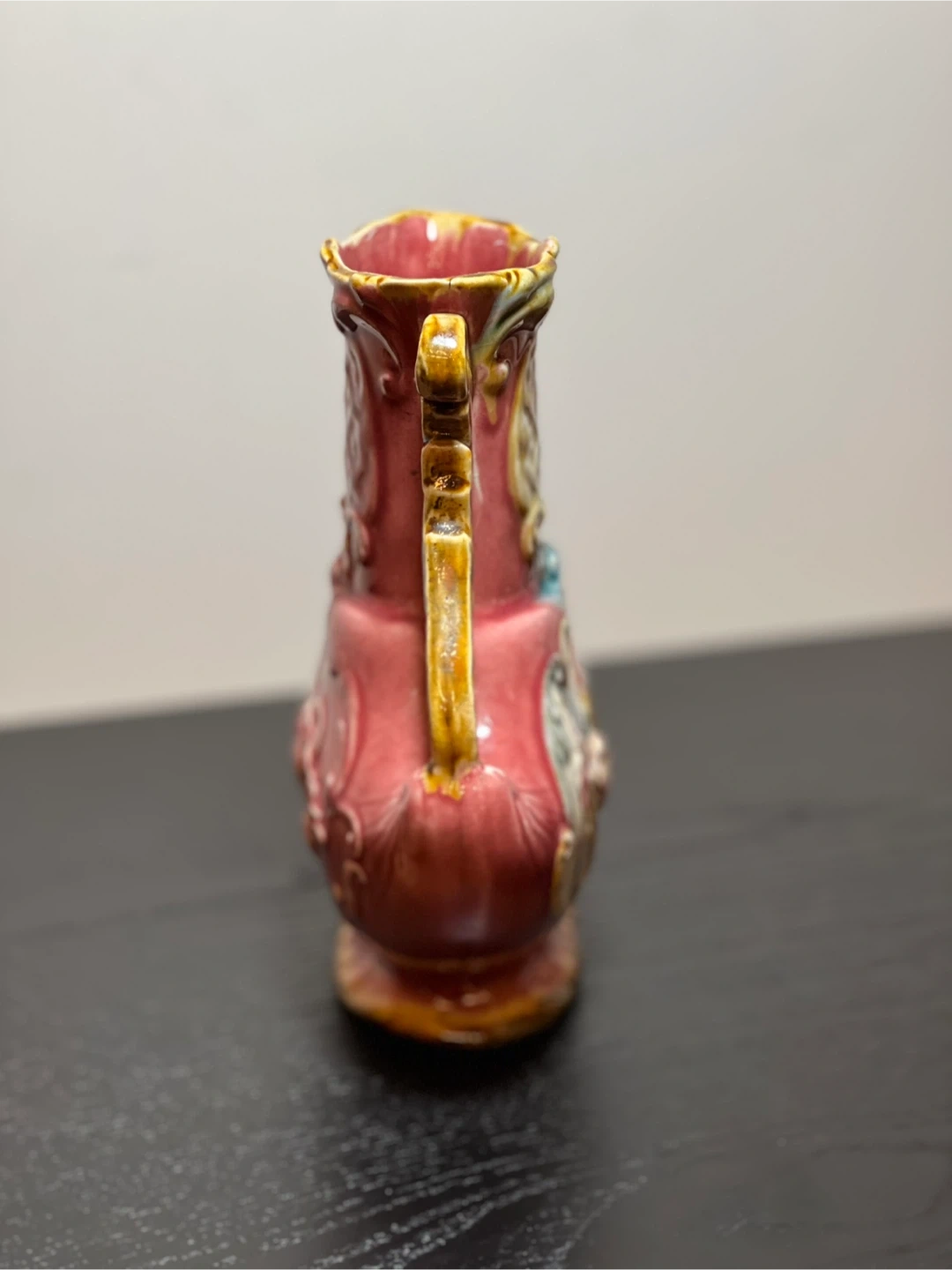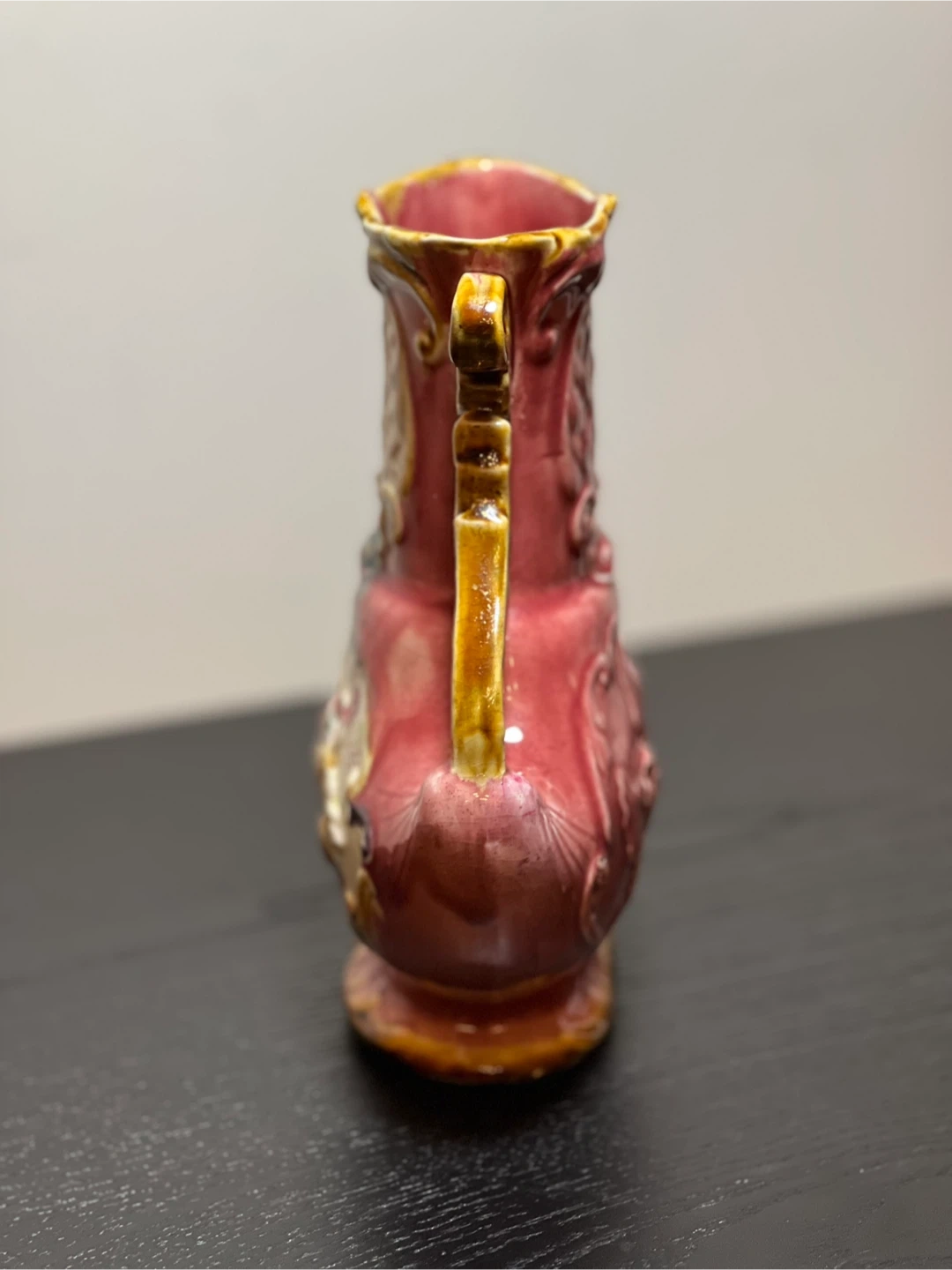 98Antique c.1900 Red Karlsruche Germany Grand Ducal Majolica Vase Floral 726. Reticulated