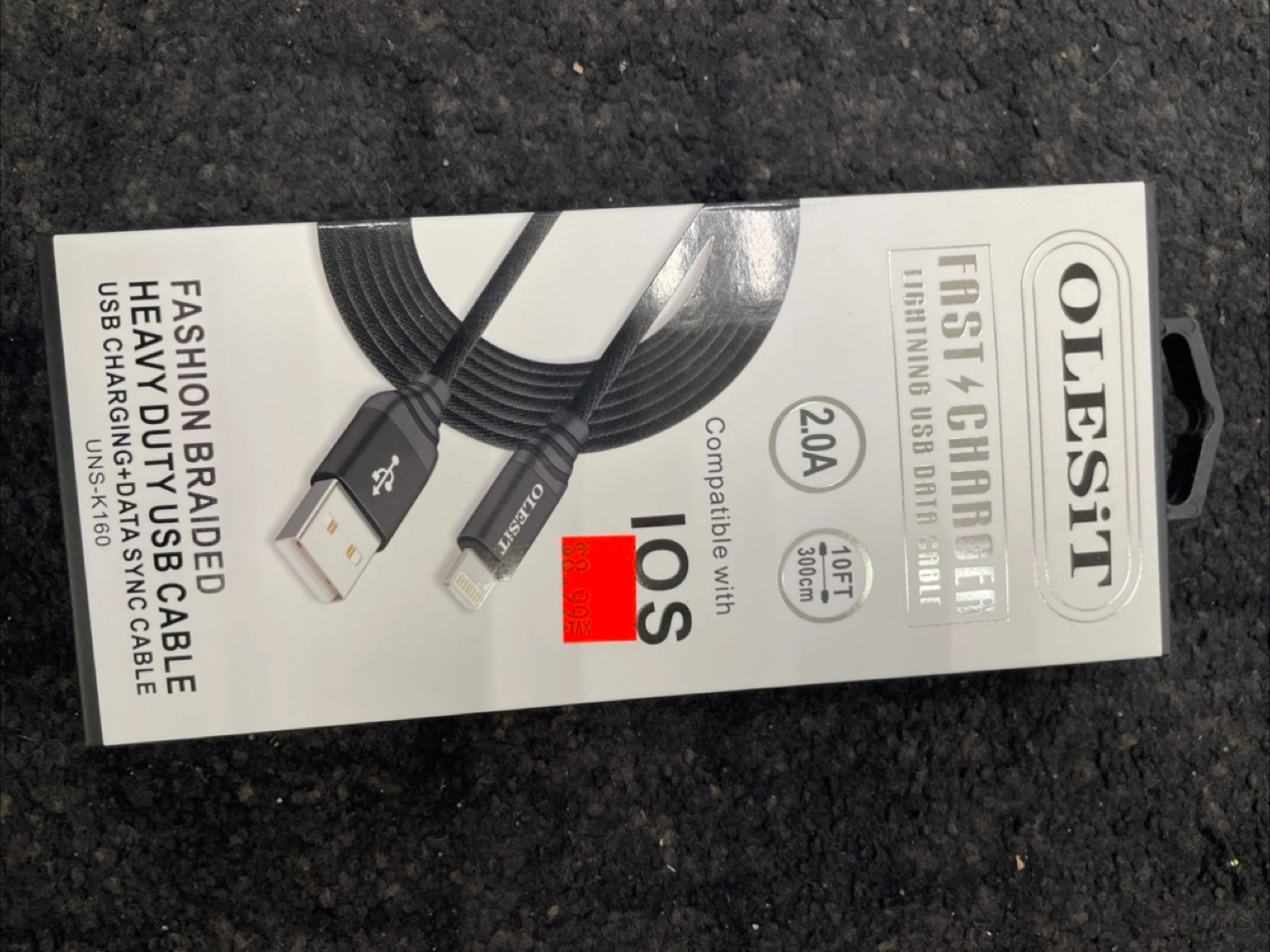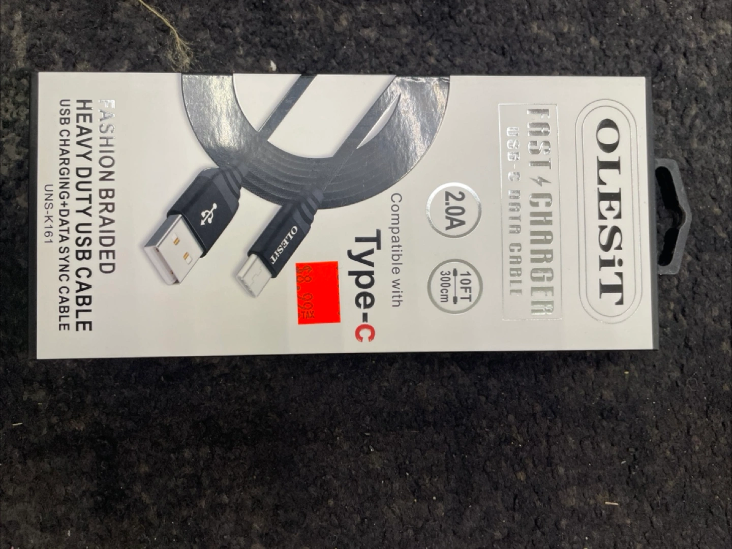Selling a brand new Olesit USB charging cable. It's a fashion braided, heavy duty USB cable for charging and data sync. Compatible with Type-C and IOS. It's 10FT (300cm) and 2.0A