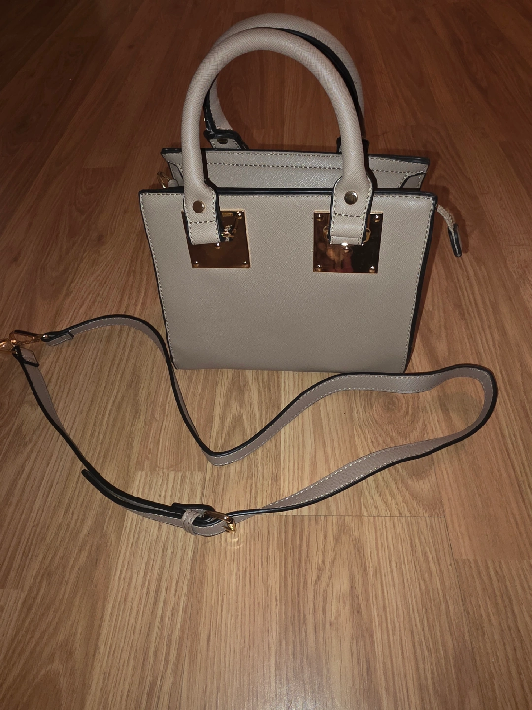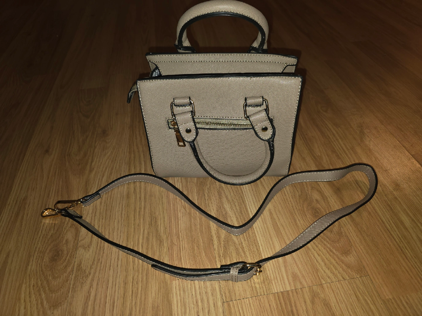 Selling a beige handbag with a strap. It's brand new and ready for a new home! The bag features a top handle and a detachable shoulder strap for versatile carrying options. Perfect for everyday use or a night out