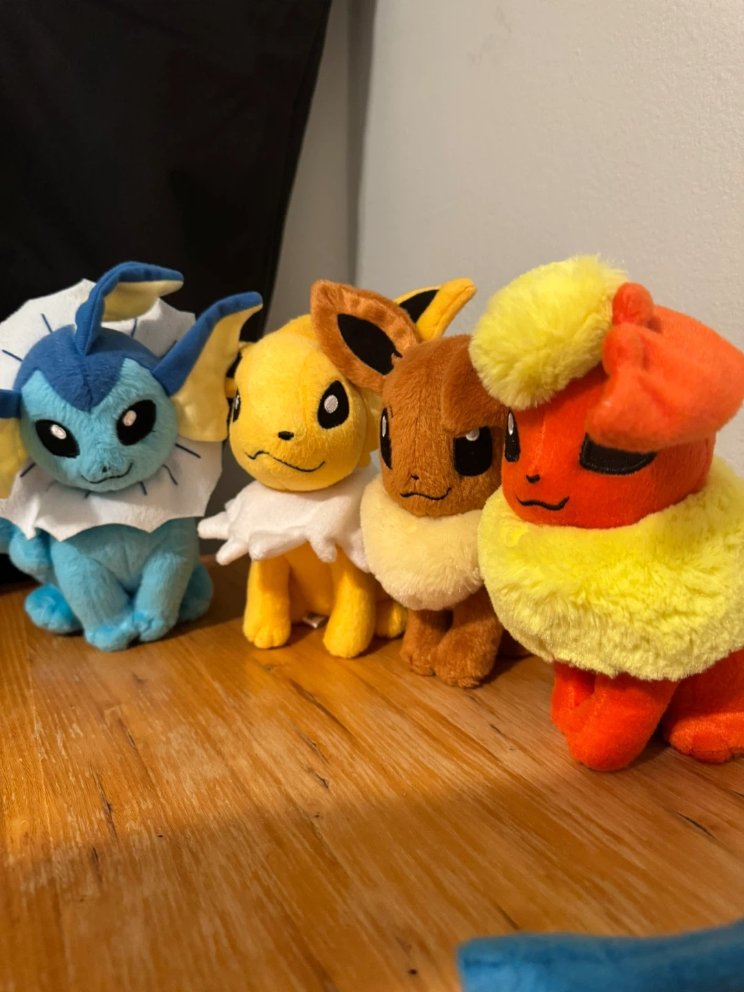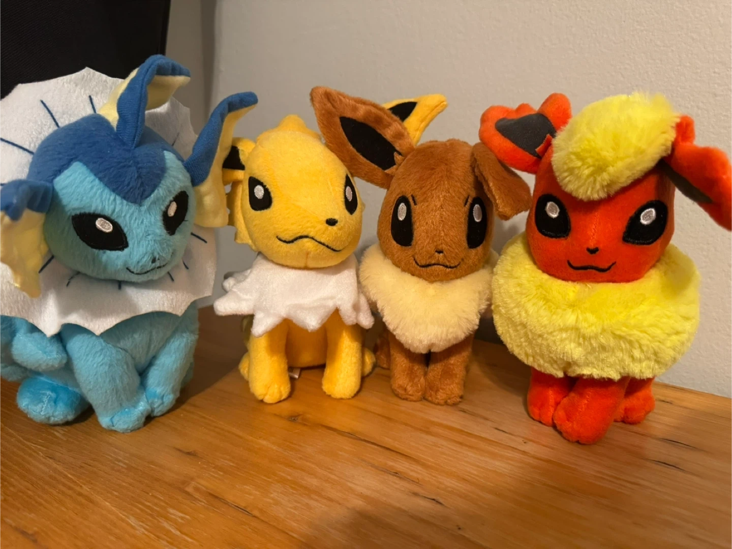 Selling a set of adorable Pokemon Eevee evolution plushies! You'll get Jolteon, Flareon, Eevee, and Vaporeon. They're in good condition and ready for a new home. Please know Jolteon’s nose is a little off.