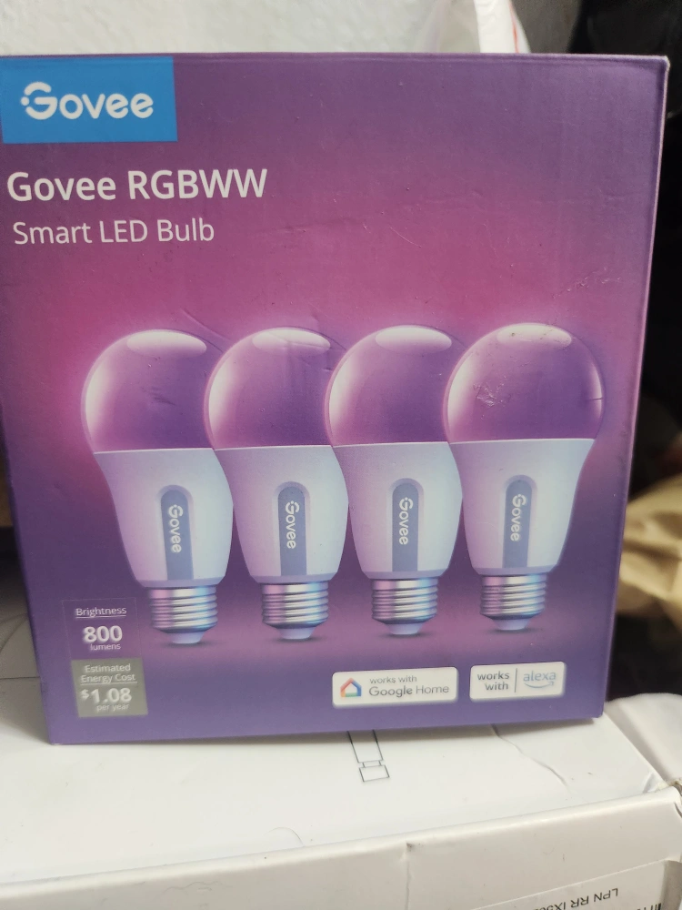 Selling a brand new 4-pack of Govee RGBWW Smart LED Bulbs! They work with Alexa and Google Assistant, offering 16 million colors. The bulbs are A19 and 800 Lumens. Comes in the original box