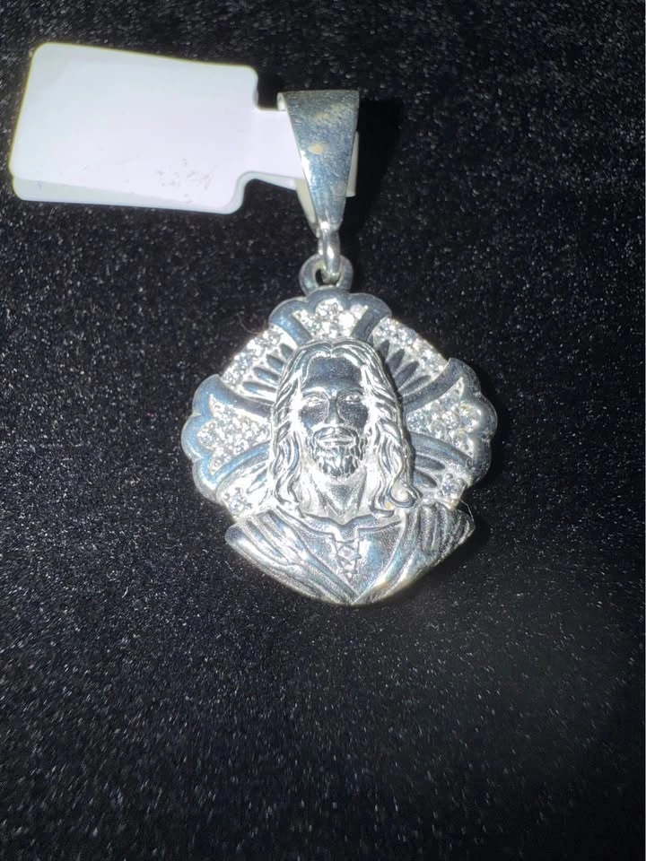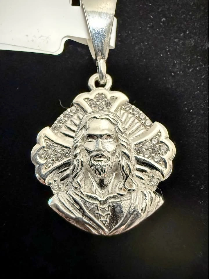 925 Sterling silver made in Italy Jesus face with cross pendant with triple Acz stones Great gift! Shipping available!