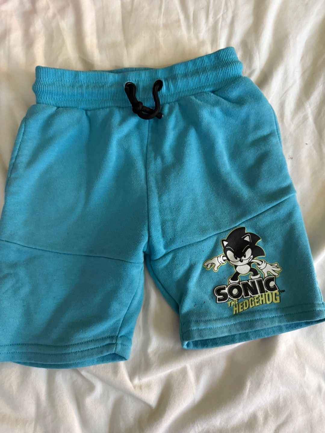 I'm selling a pair of light blue Sonic the Hedgehog shorts. They're in great condition and perfect for a little one who loves Sonic! The size is 5-6 years or 116 cm