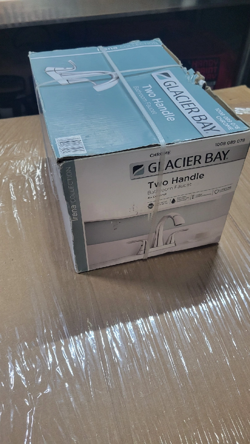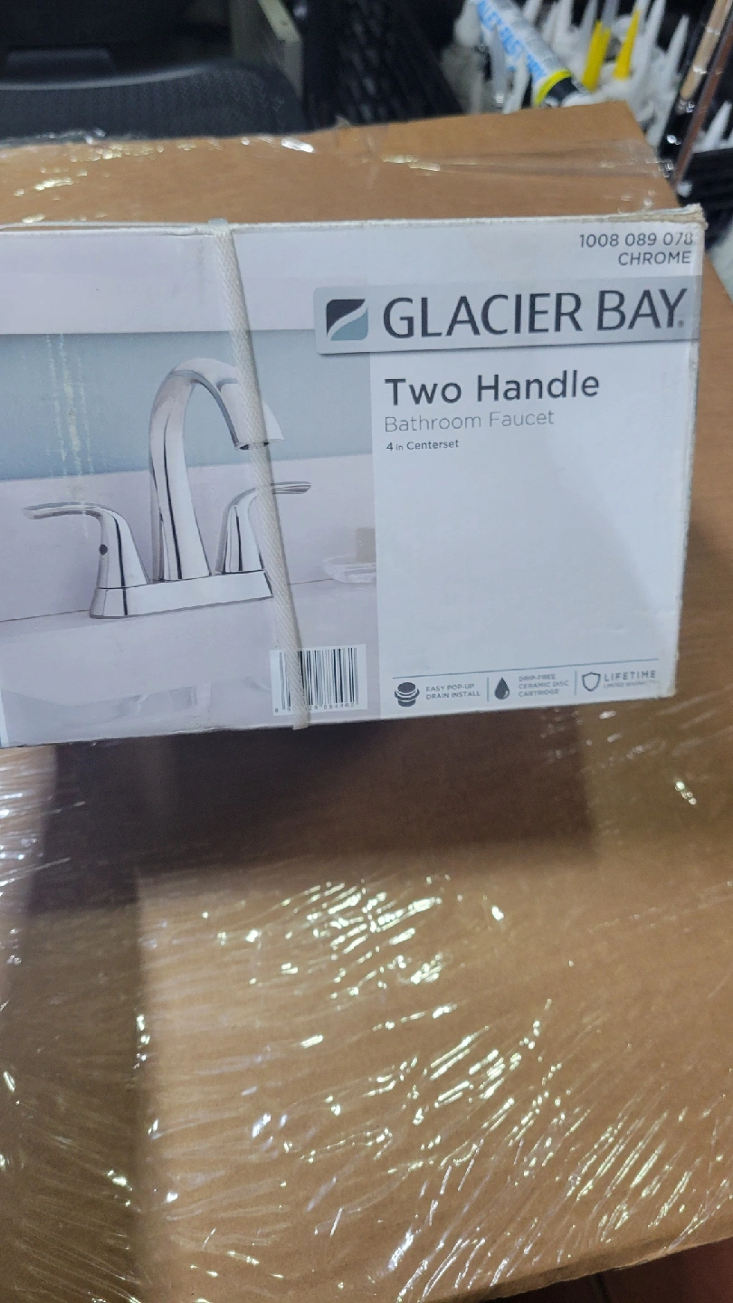223Selling a brand new Glacier Bay two-handle bathroom faucet still in its original packaging! It's a chrome finish and designed for a 4-inch centerset installation. Easy pop-up drain install and drip-free ceramic disc cartridge