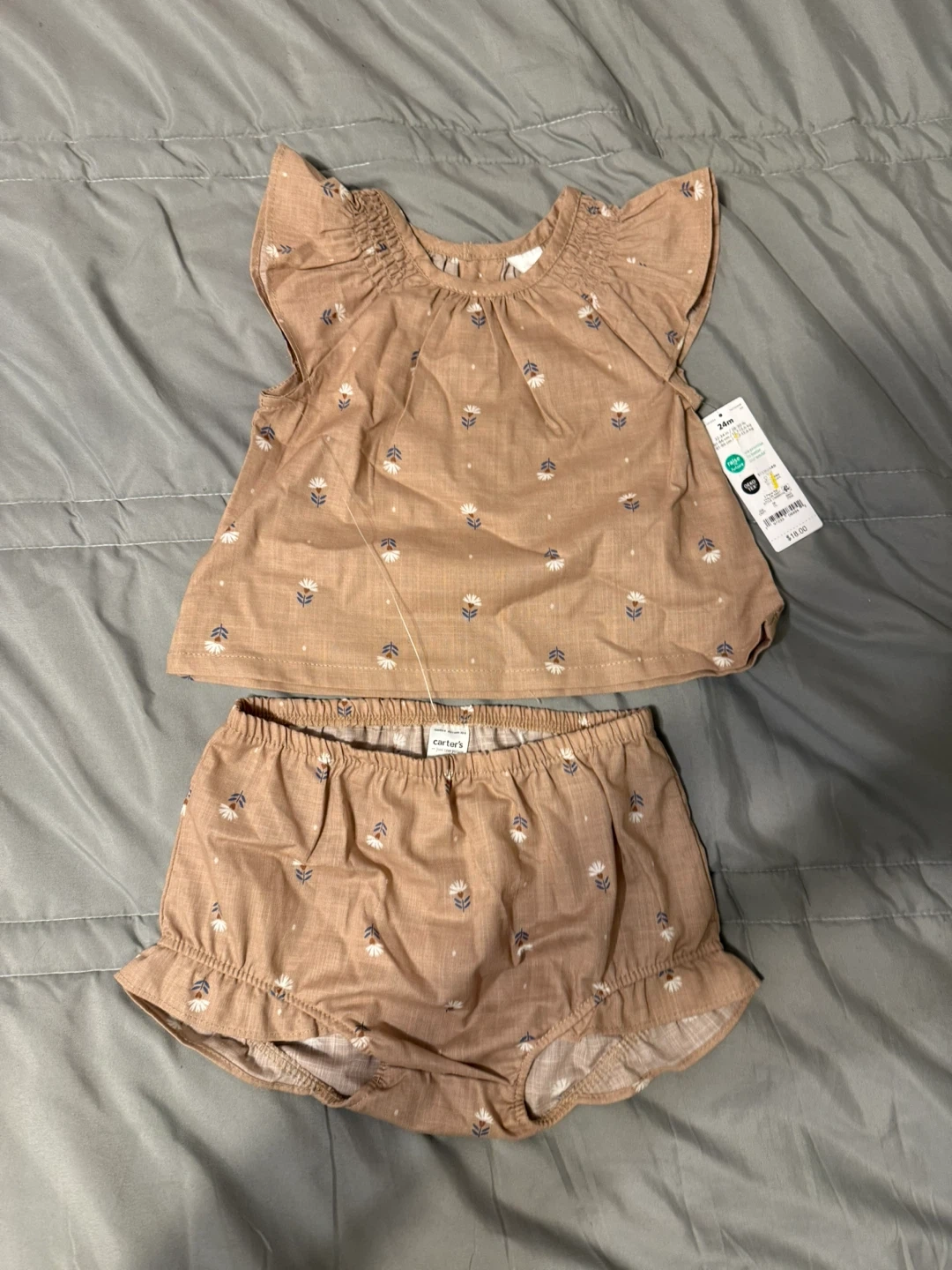 Super cute Carter's baby outfit in size 24 months! The set includes a top and matching bloomers. It's in great condition and ready for a new home